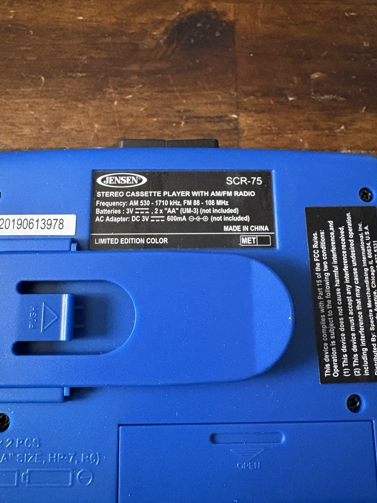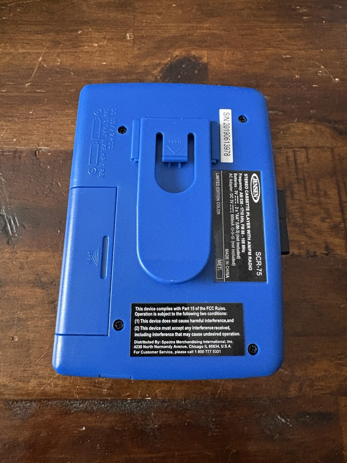 Jensen SCR-75 Personal Stereo Cassette Player Blue- Tested Works