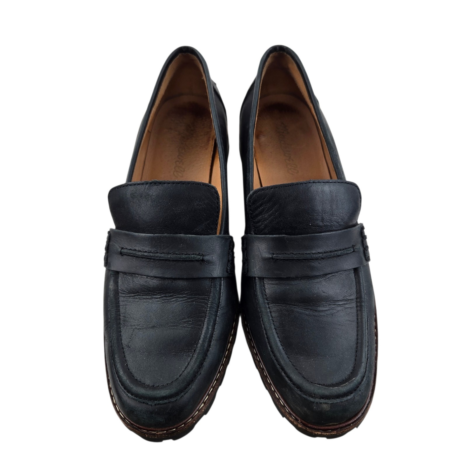 Madewell Corinne Lug Sole Loafers Womens 8 Black Leather Preppy Dark Academia