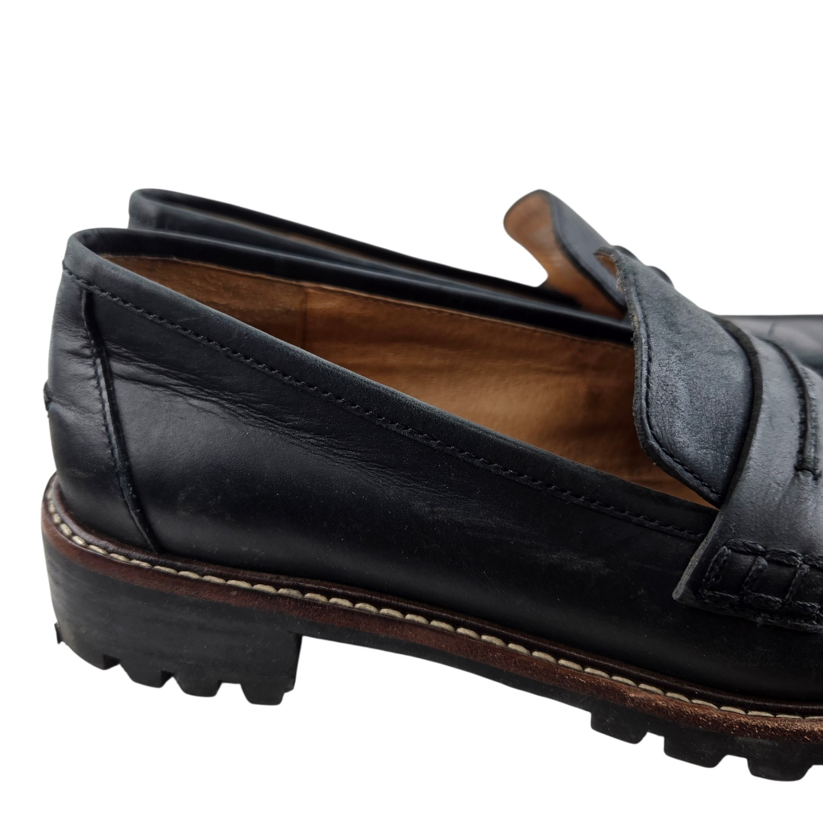как выглядит Madewell Corinne Lug Sole Loafers Womens 8 Black Leather Preppy Dark Academia фото