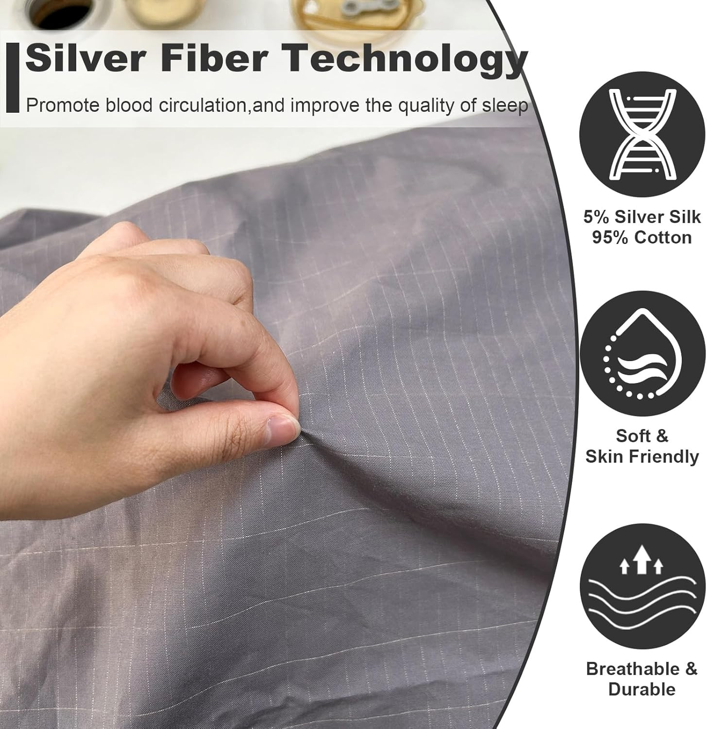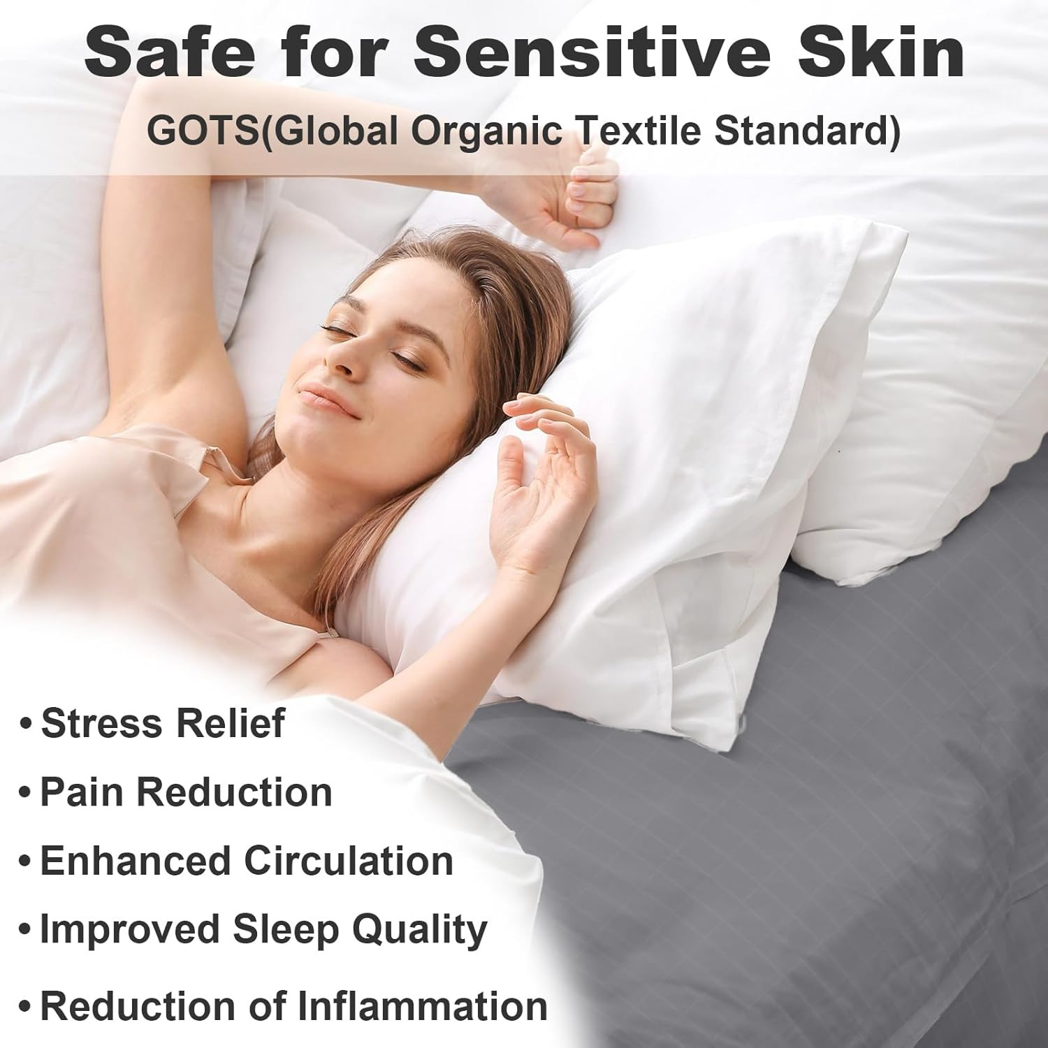 Grounding Twin Fitted Sheet with Silver - 90 Organic Cotton for Better Sleep