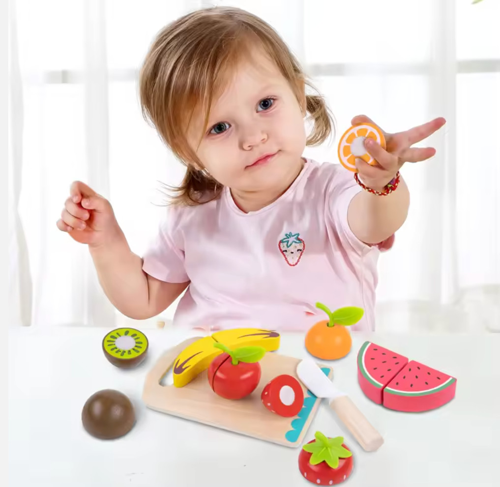Montessori Wooden Fruit Cutting Set Pretend Play Food Toy for Toddlers Kids
