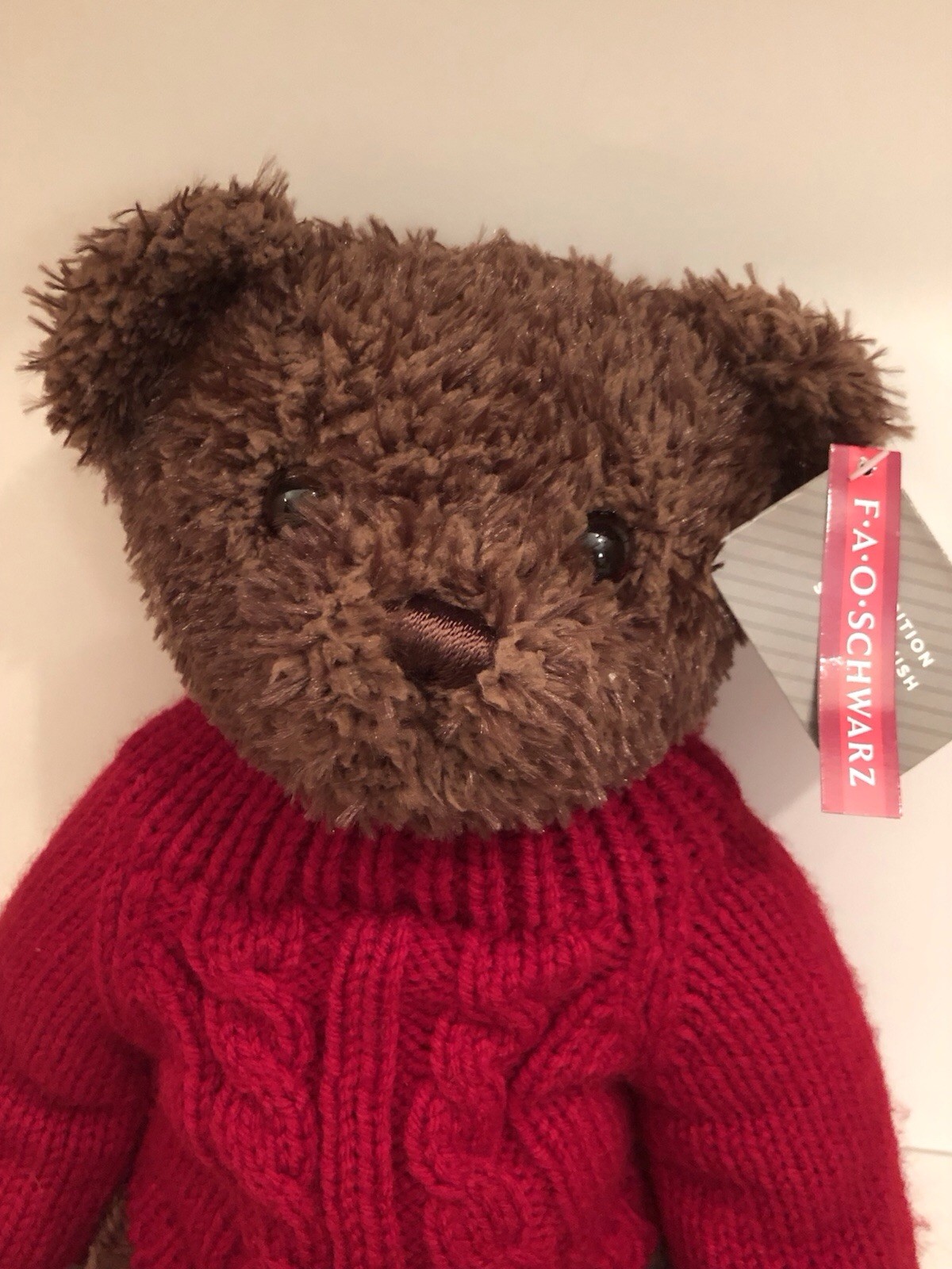 FAO Schwarz Brown Teddy Bear Red Sweater Plush Stuffed Animal Soft Toy 15 NWT