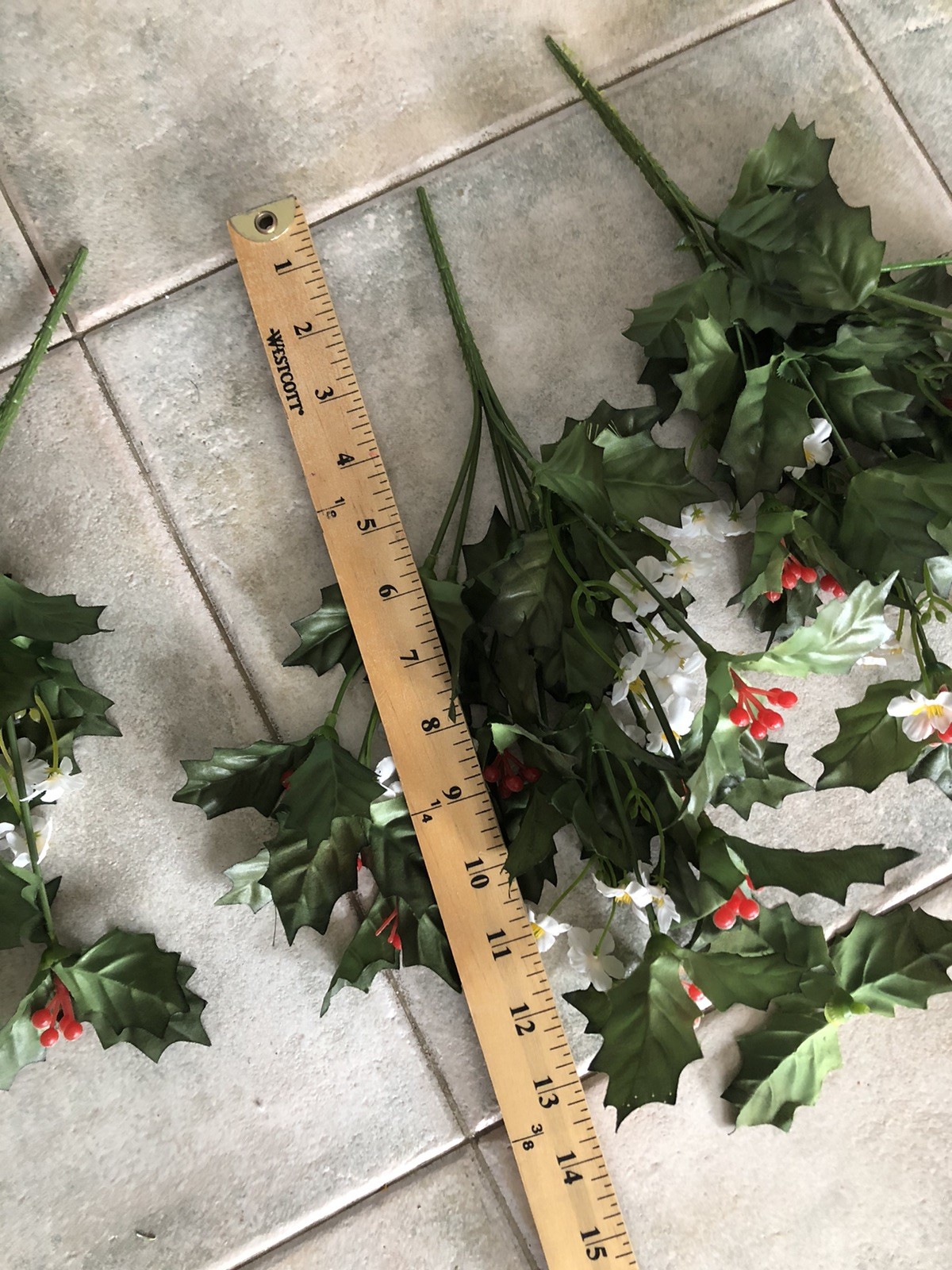 как выглядит Lot Of 3 Vintage Large Plastic Christmas Holly Berry Floral Picks Crafts.. фото