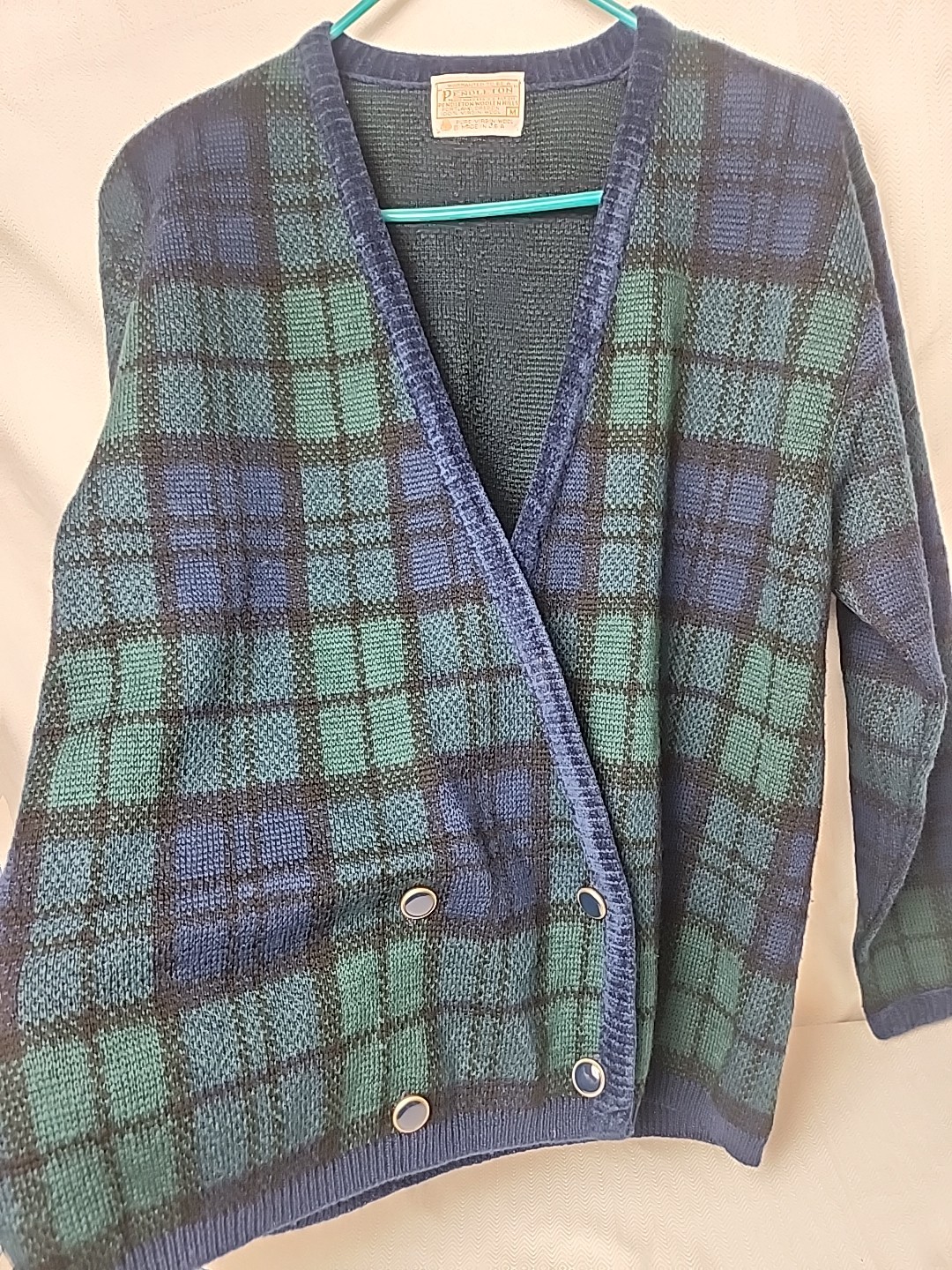 как выглядит Vintage 70s PENDLETON Virgin Wool Plaid Cardigan Sweater Womens Medium Green USA фото