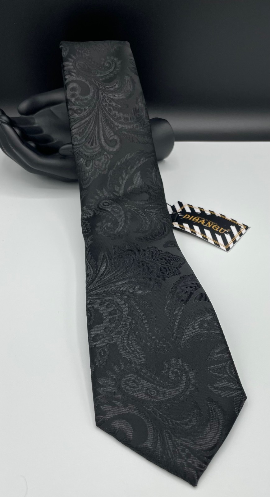 как выглядит DiBanGu Mens 100 Silk Tie Black Paisley Hand Tailored in Italy фото