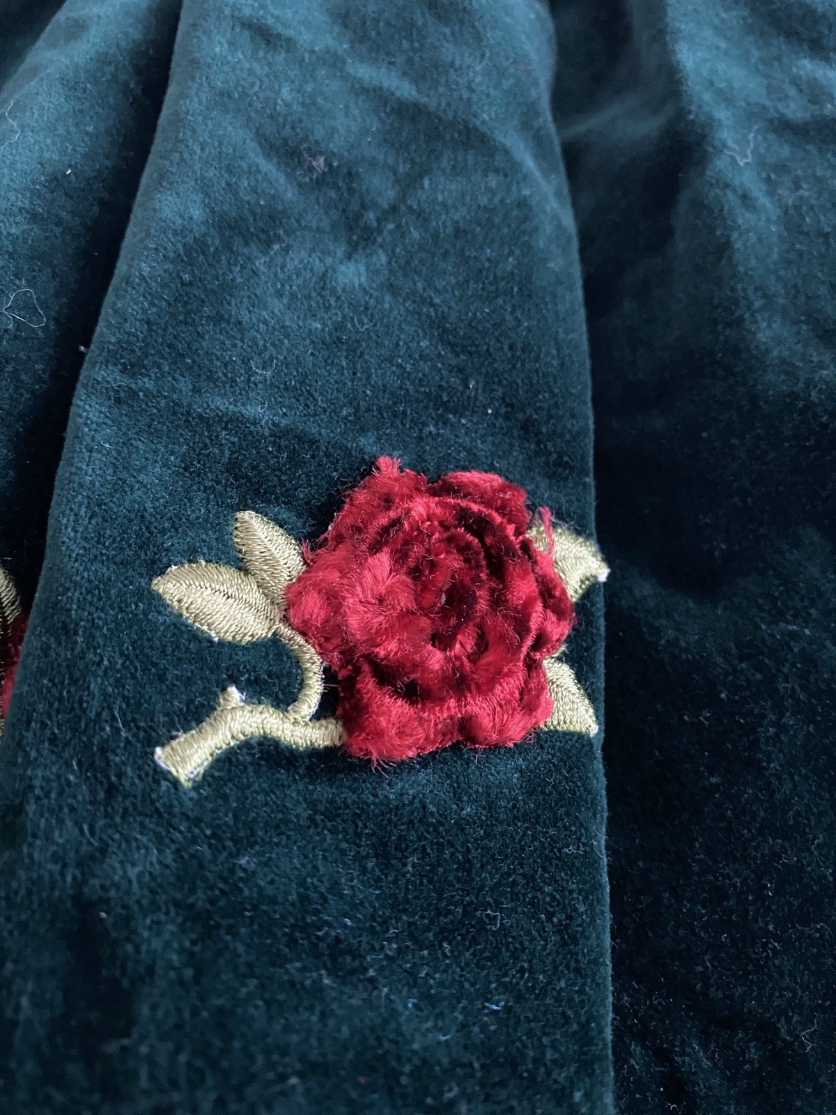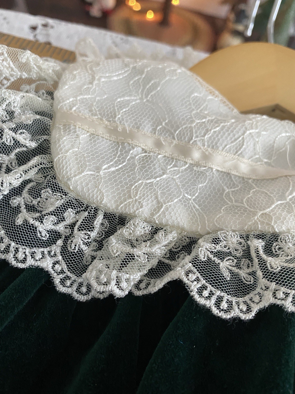 как выглядит Vintage 100 green Floral embroidered lace velvety holiday dress 6/9 Months фото