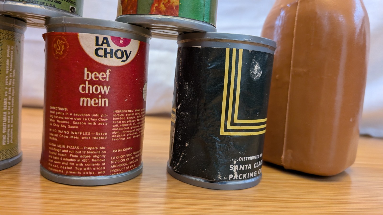 Vintage Kitchen Play Pretend Food Plastic Cans Goods Name Brand Lot of 13