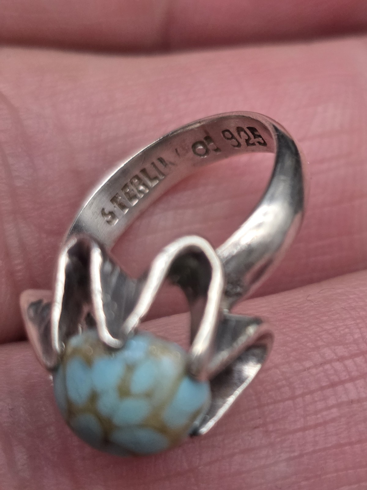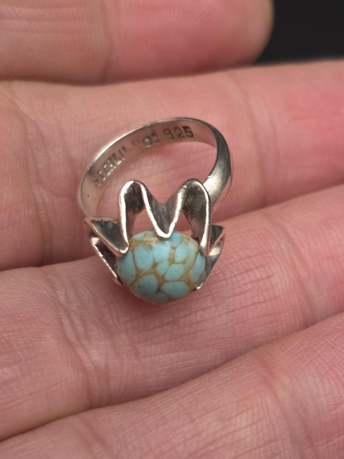 как выглядит VTG Turquoise Sterling Silver 925 HANDMADE Ring Size 5 фото