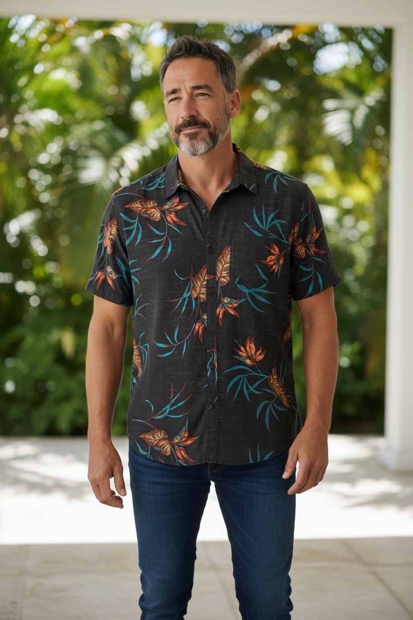 как выглядит Men s Billabong Floral Hawaiian Style Shirt Size XL Tailored Fit Stretch фото