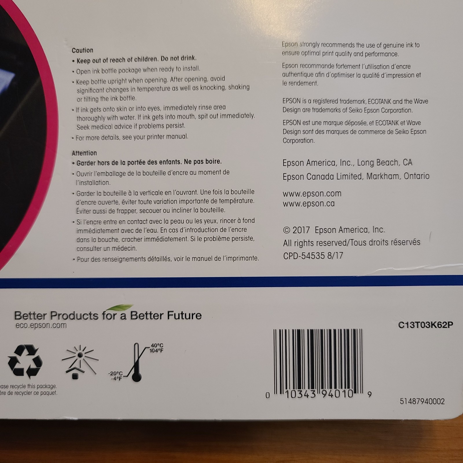 как выглядит Genuine Epson 502 Ink Combo 4 Pack for ECO-TANK Printers EXP. 01/2026 - Sealed фото