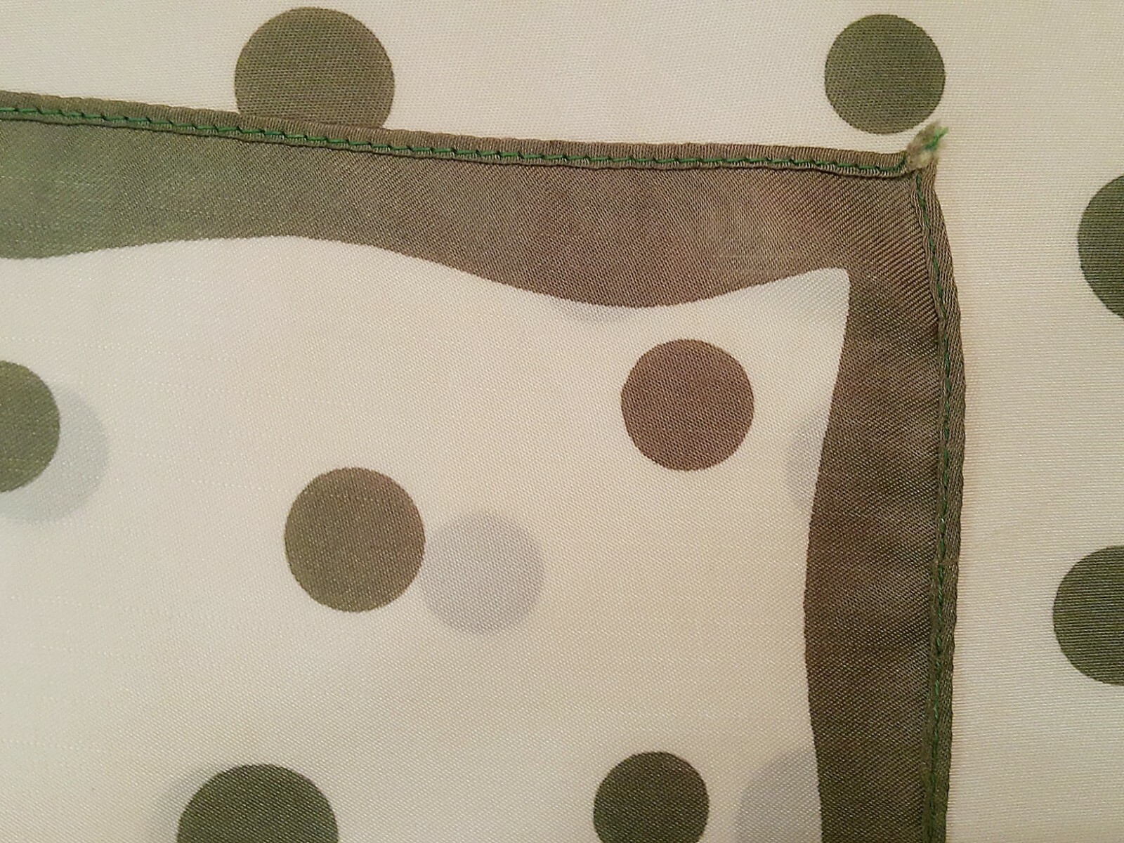 SCARF VINTAGE AUTHENTIC POLKA DOTS WHITE GREEN ACETATE 19 SQUARE SMALL