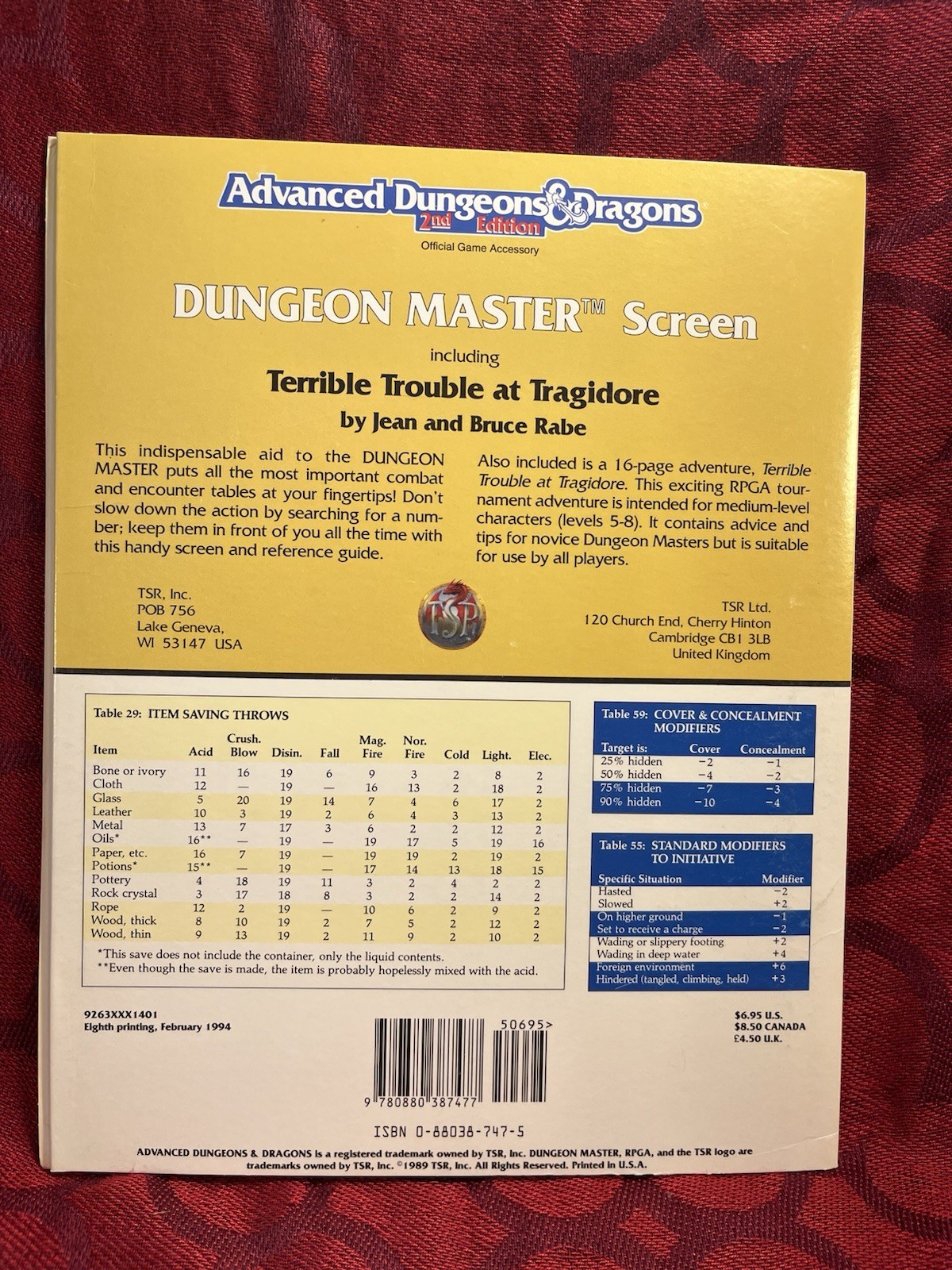 Advanced Dungeons Dragons 2nd Edition Dungeon Master s Screen 9263 1994 -8964