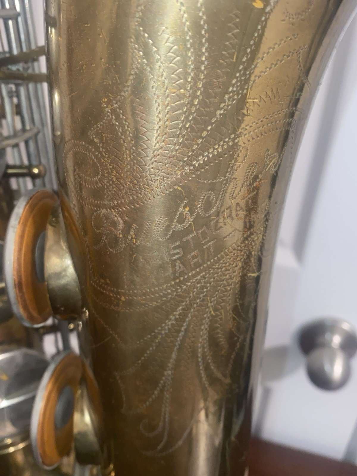 как выглядит Vintage Buescher Aristocrat Series III Tenor Saxophone Post Big G  SN359090 фото