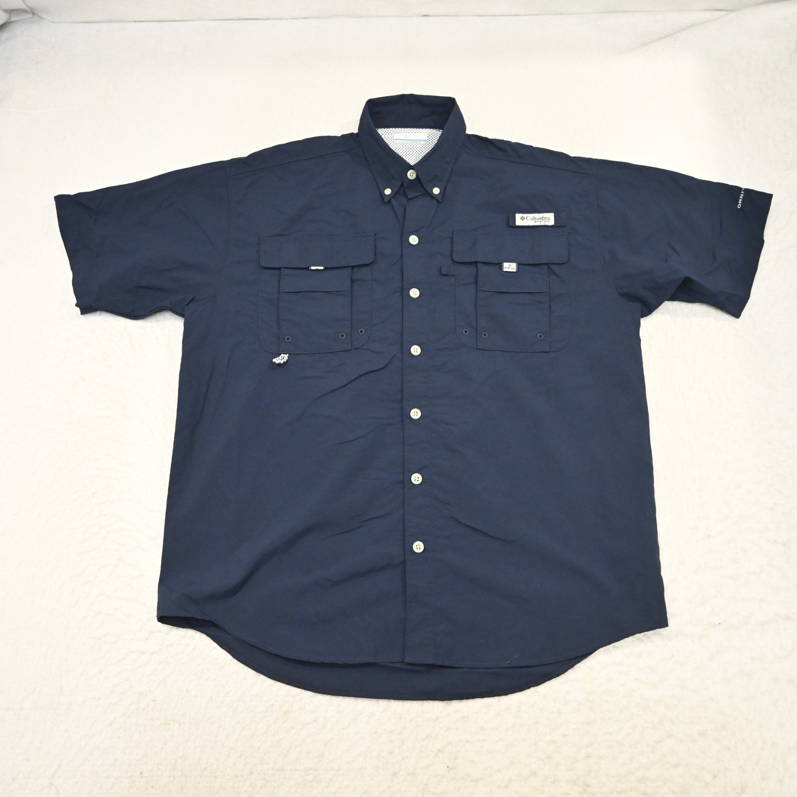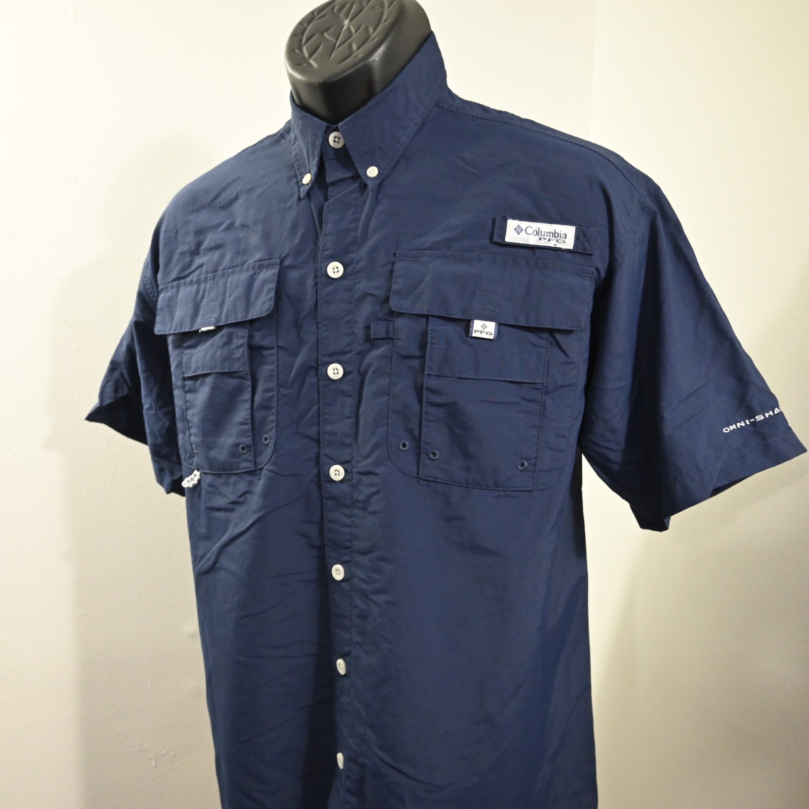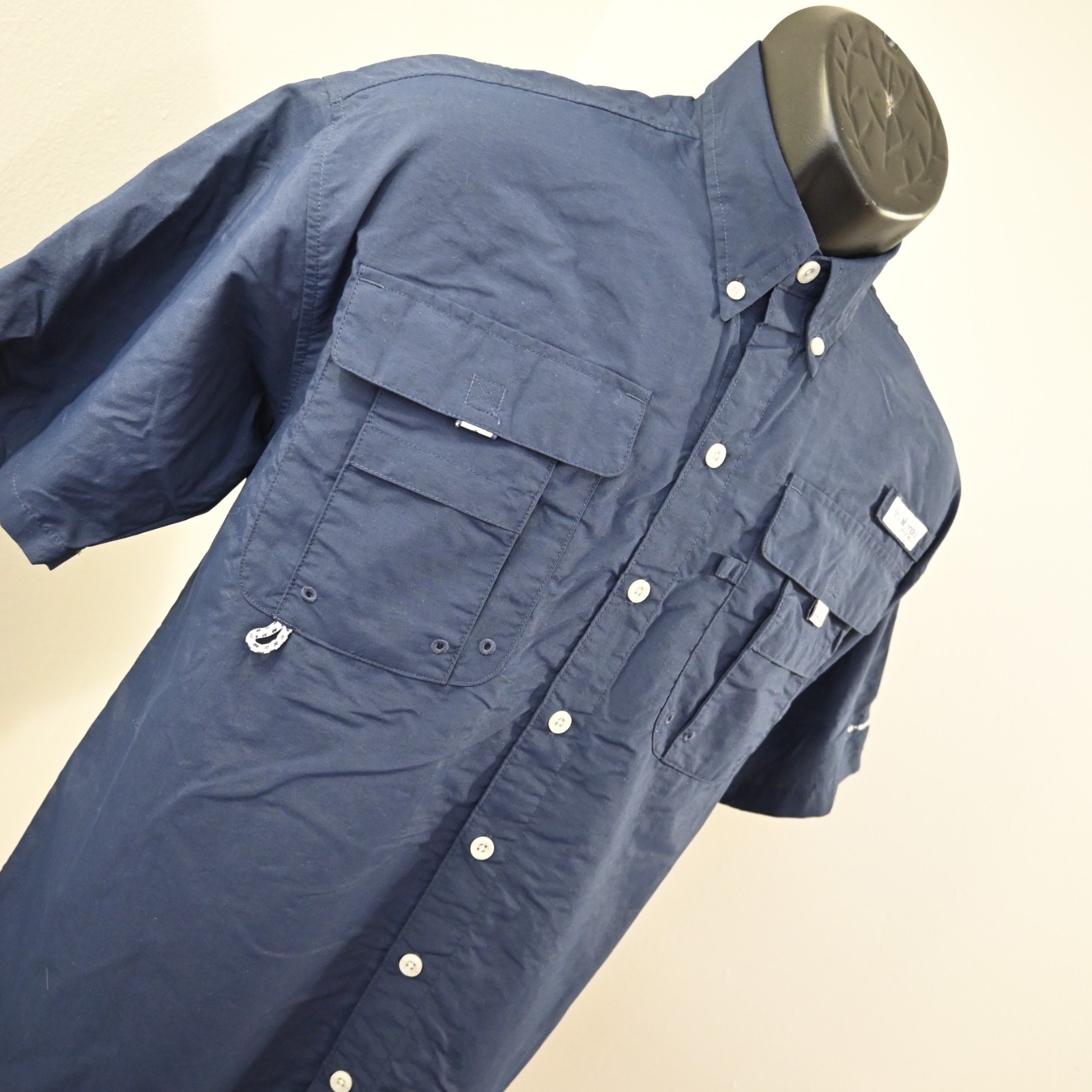 Columbia PFG Vented Fishing Shirt Blue Omni-Shade Nylon Short Sleeve Mens Small