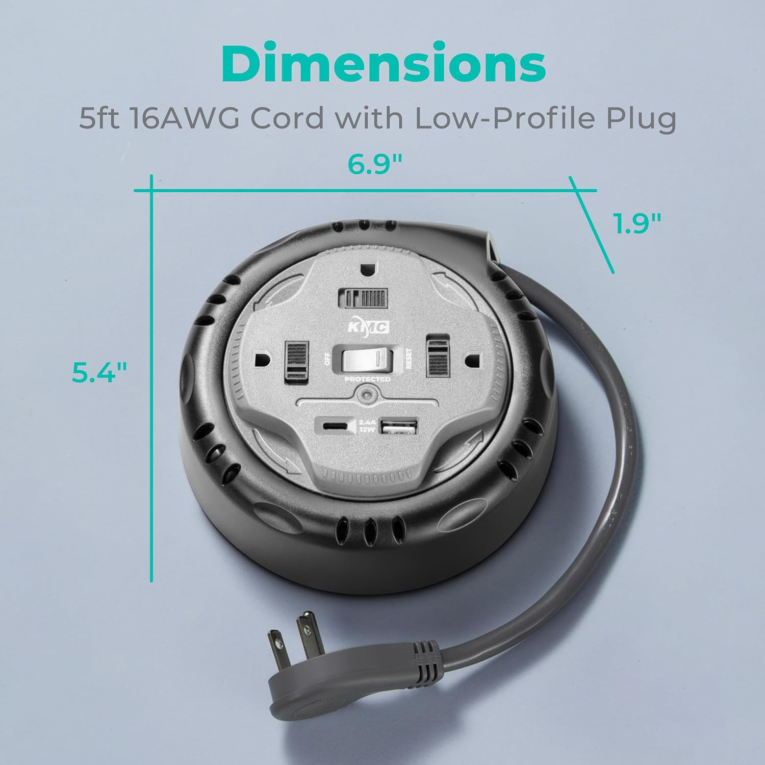 как выглядит 3-Outlet Surge Protector with Retractable Cord and USB Ports, UL/ETL Certified фото