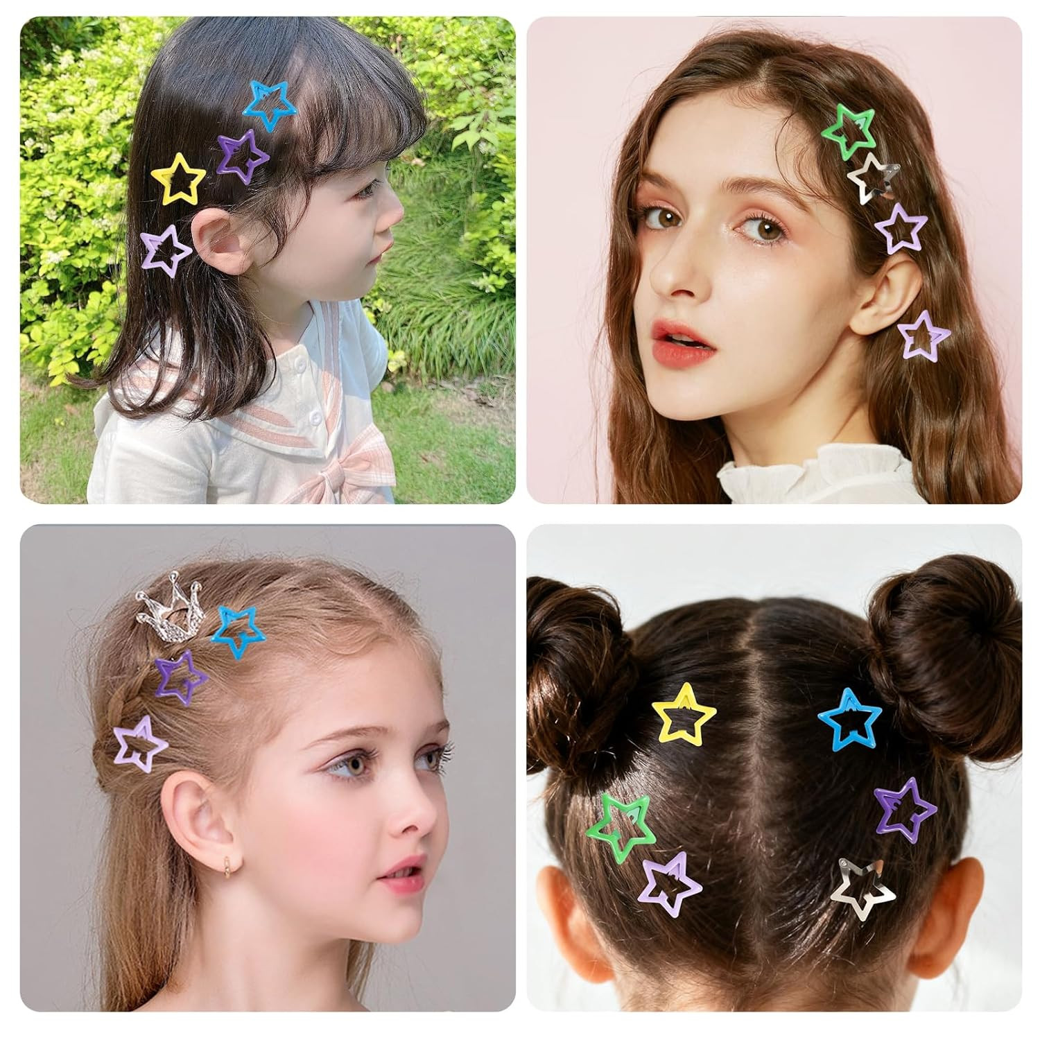 55Pcs Colorful Star Hair Clips for Women and Girls - Metal Snap Barrettes