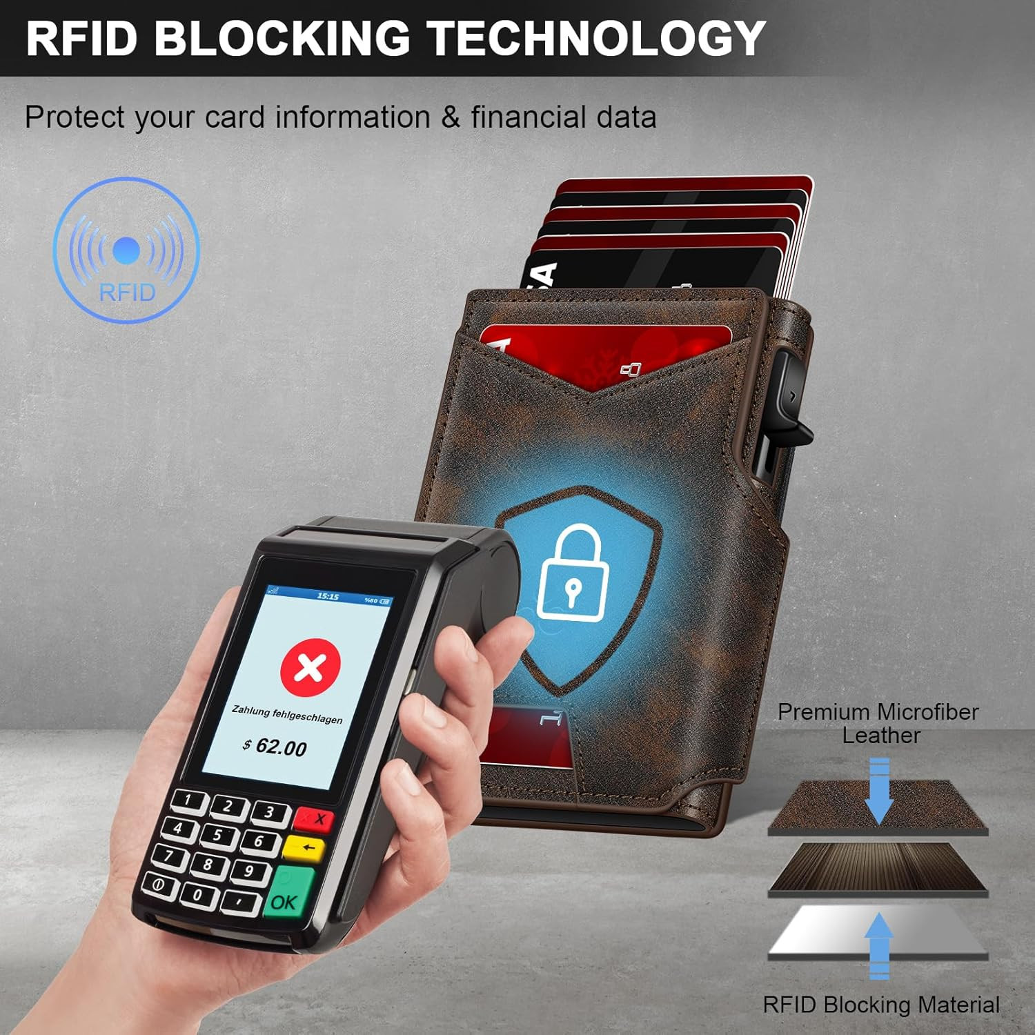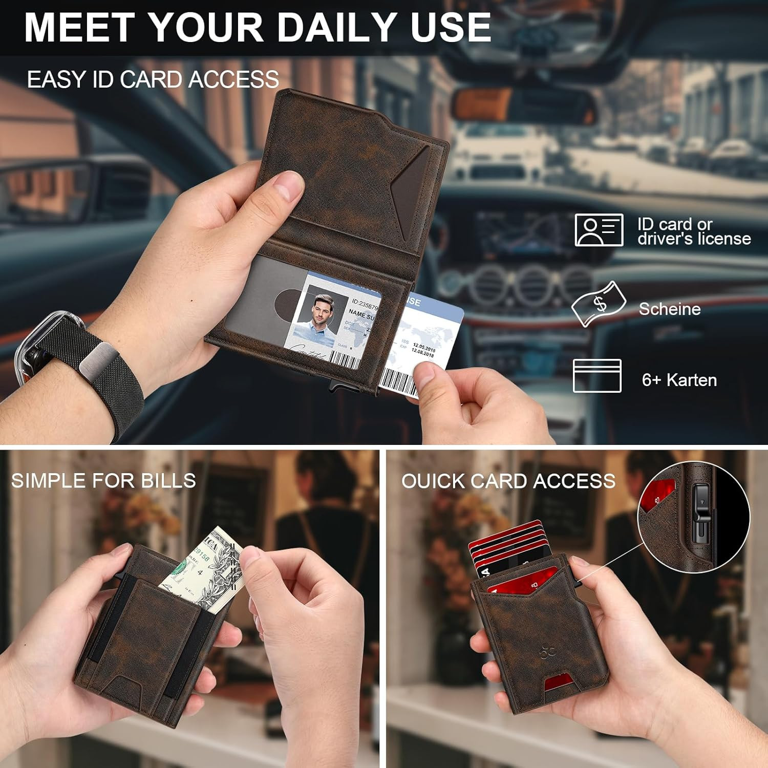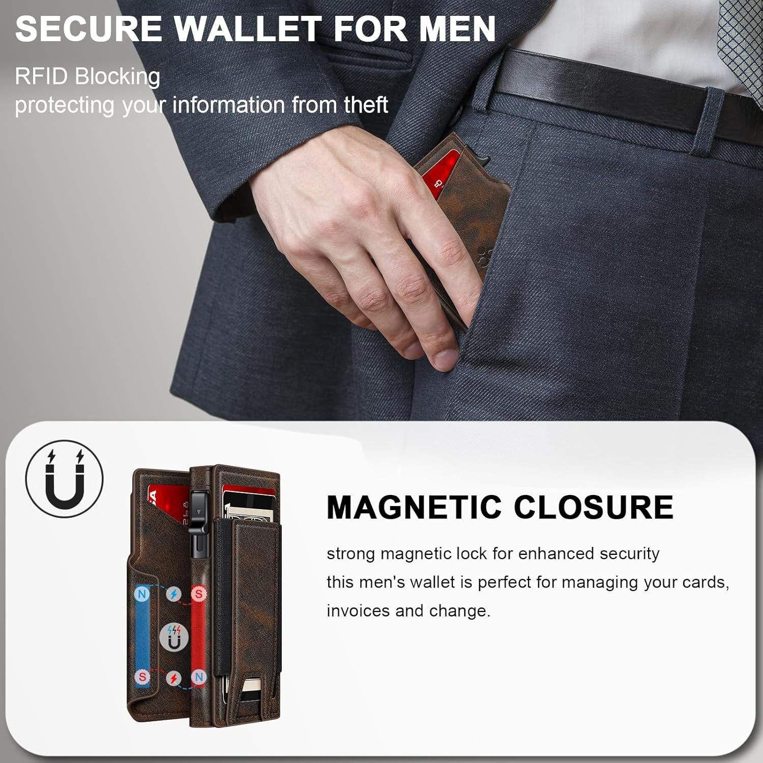 Slim RFID Blocking Bifold Wallet for Men with Pop-Up Card Holder Cash Slot