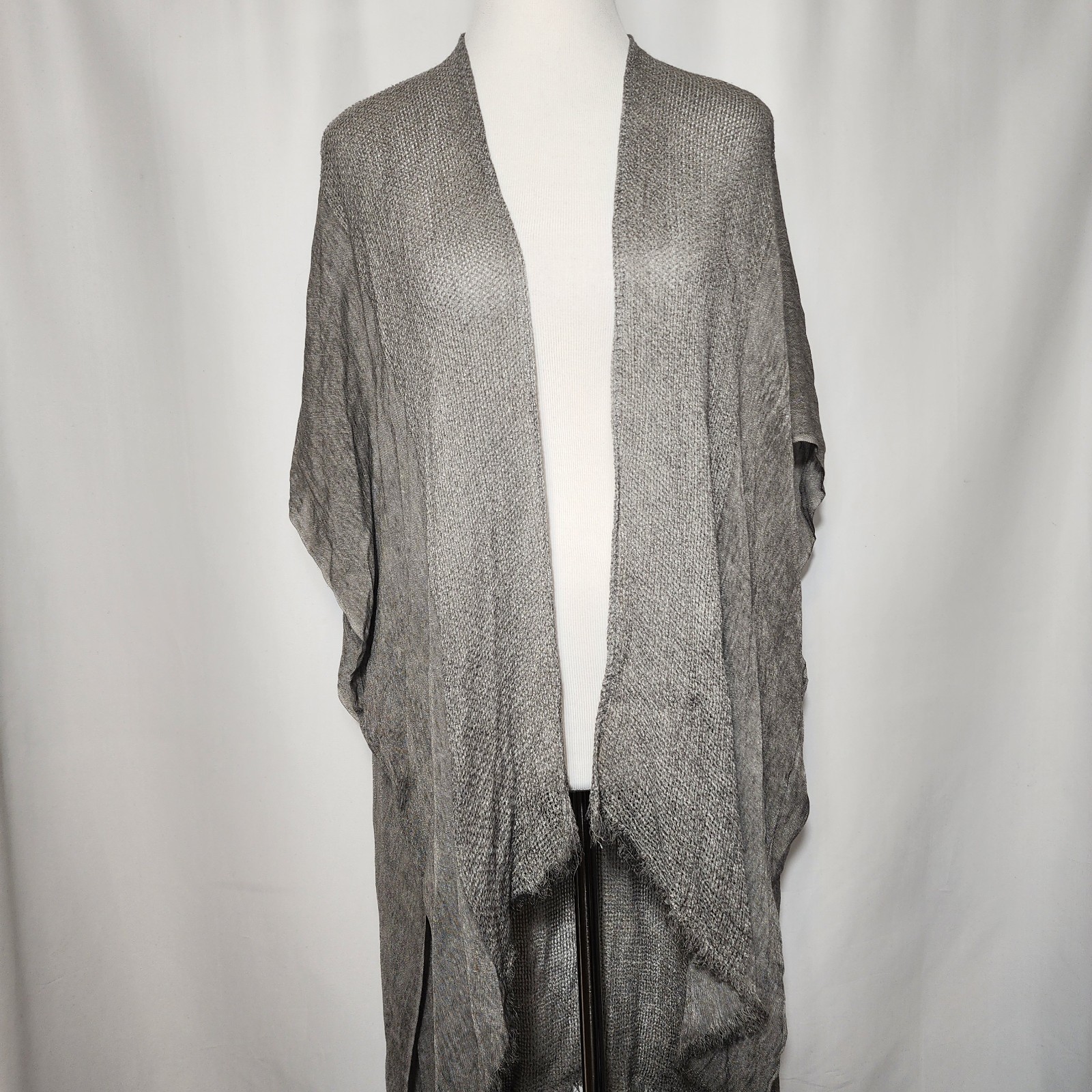 Free People OS All Tous Kimono Duster Boho Cardigan Gauzy Knit Gray Festival