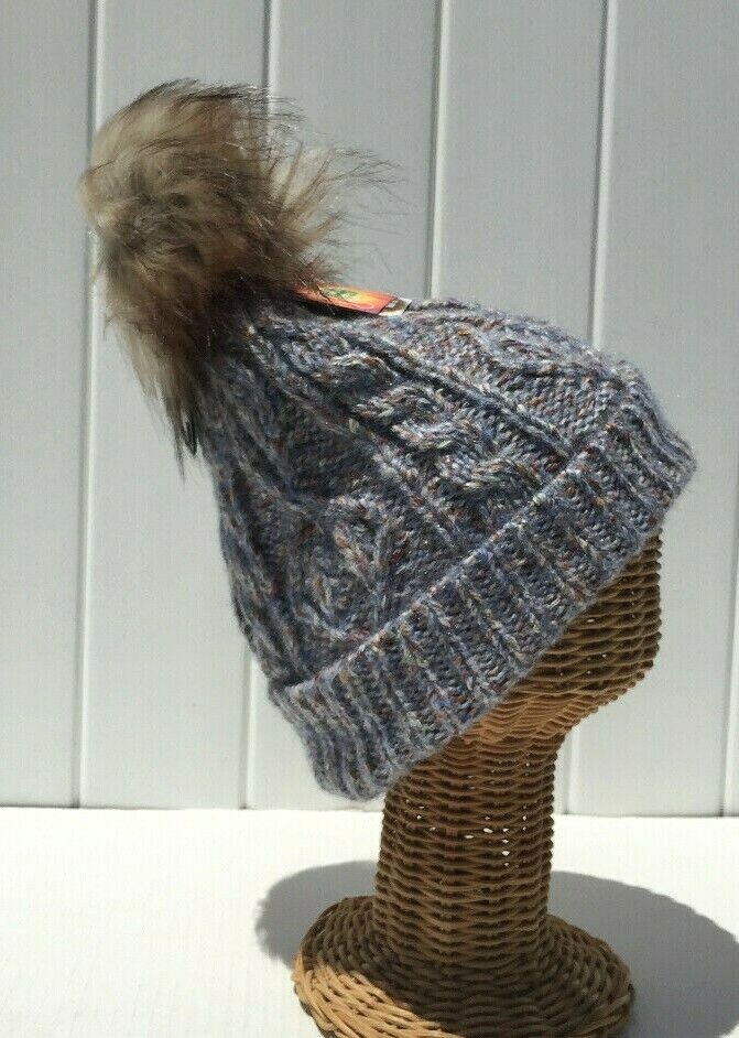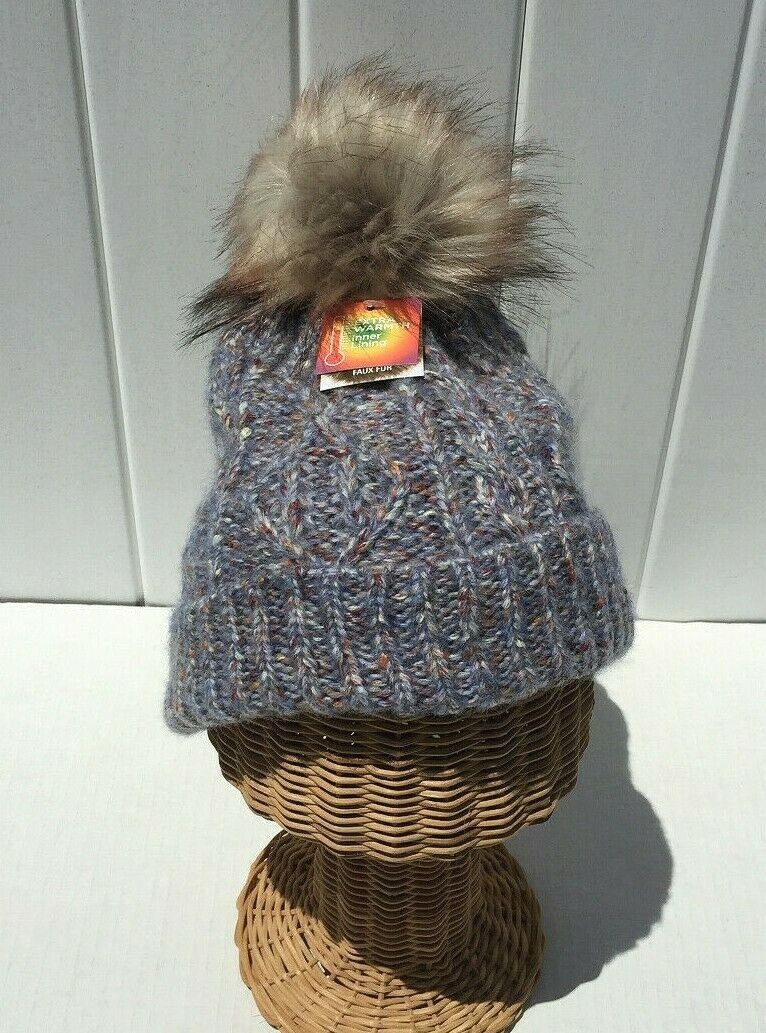 New Winter Warm Faux Fur Pom Mix Color Knit Beanie Hat Plush Lining Soft D
