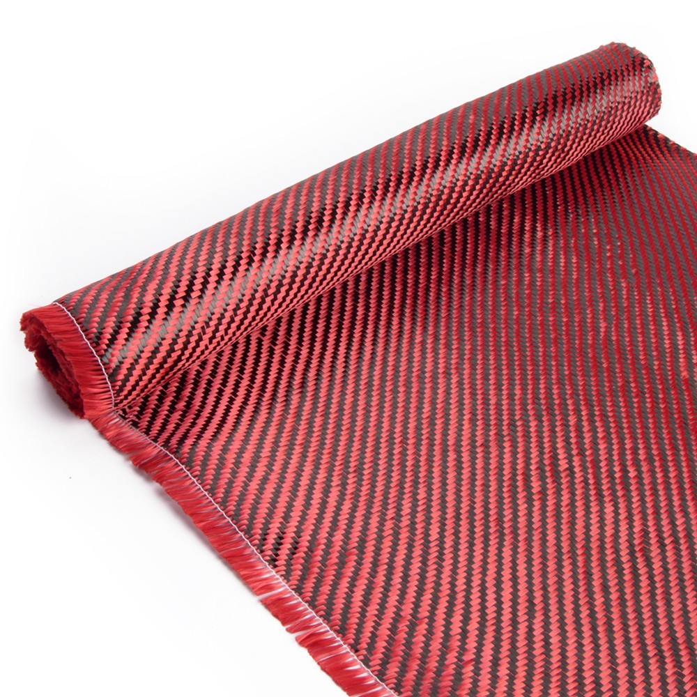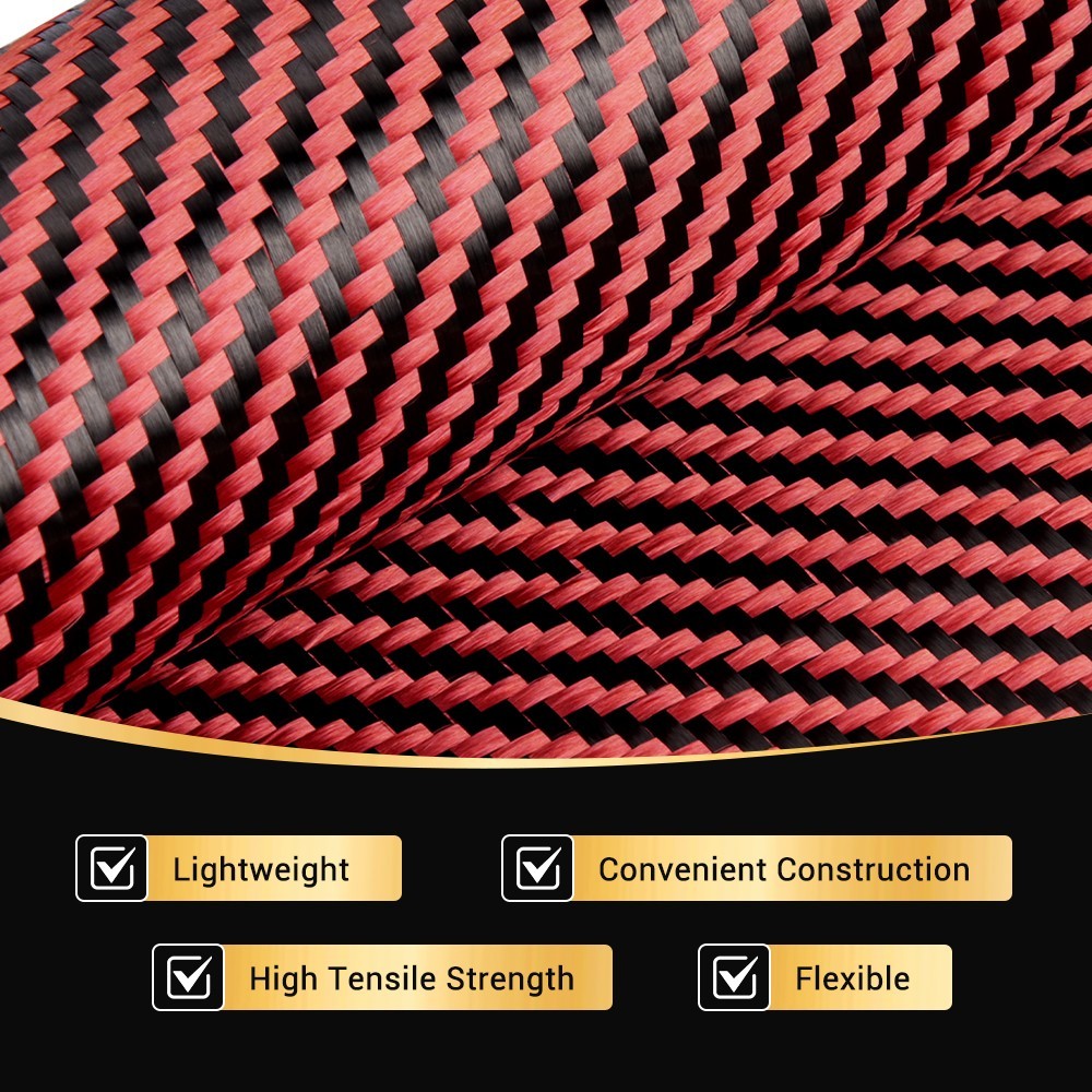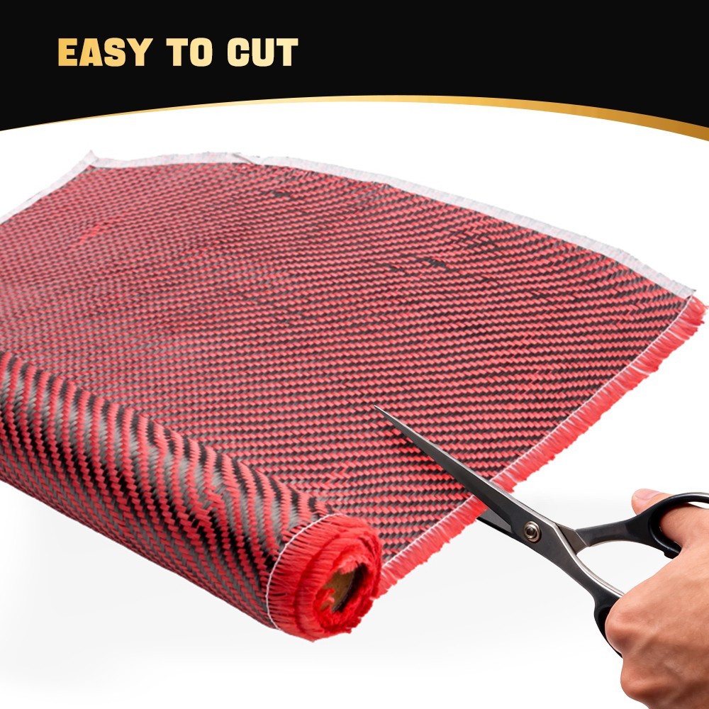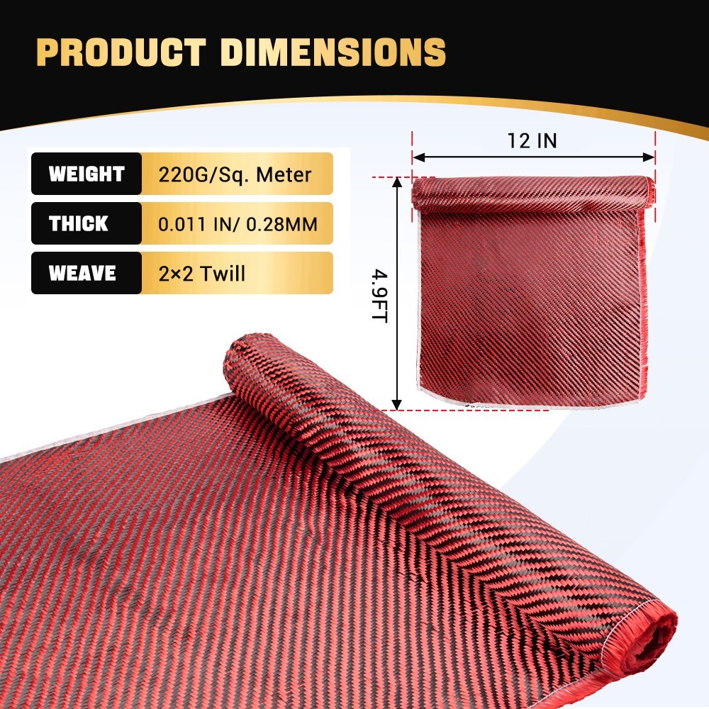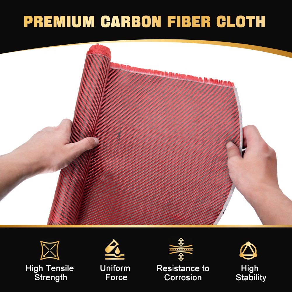 12 x 5FT Twill Weave Black Red Carbon Fiber Fabric Cloth 3K, 9oz, 12x59