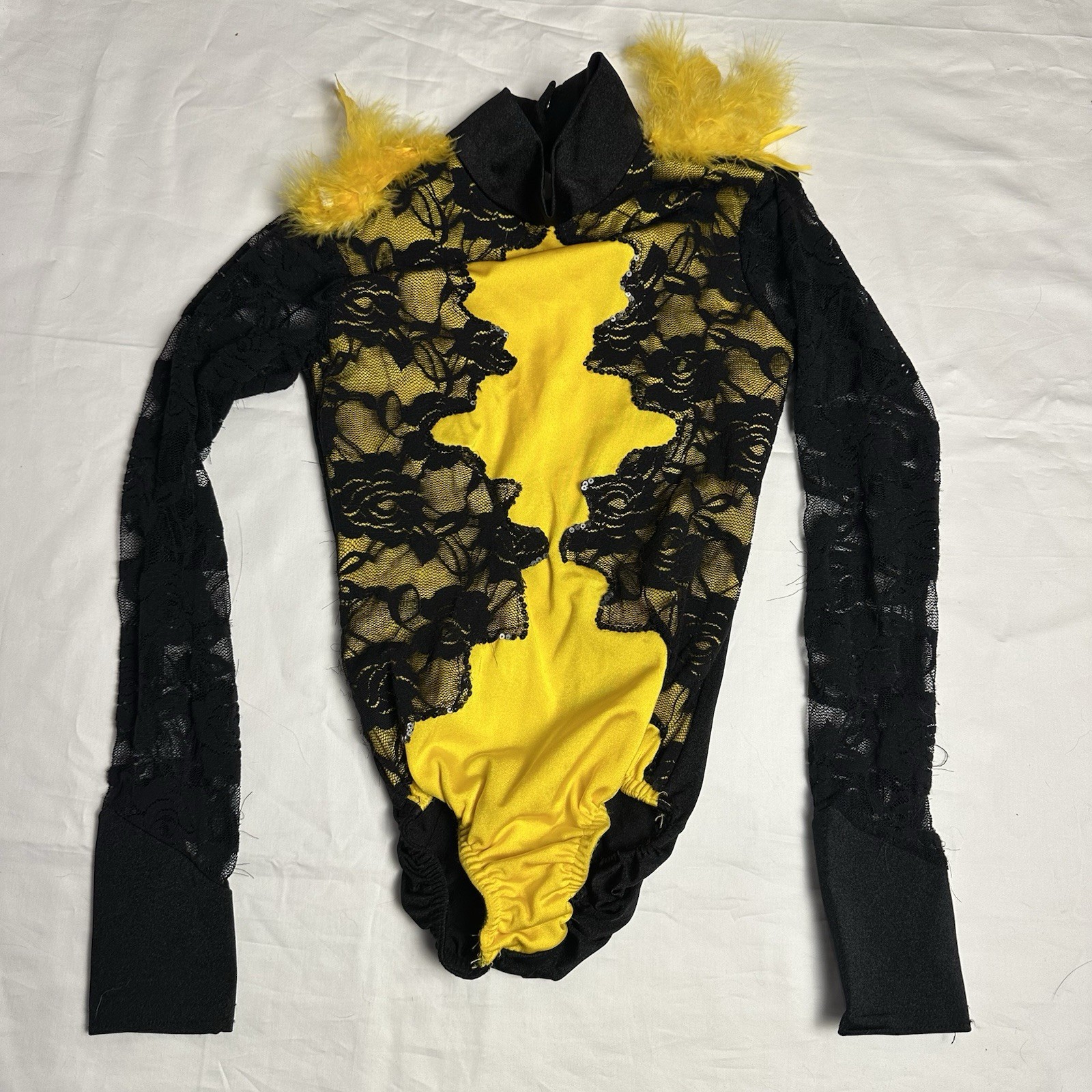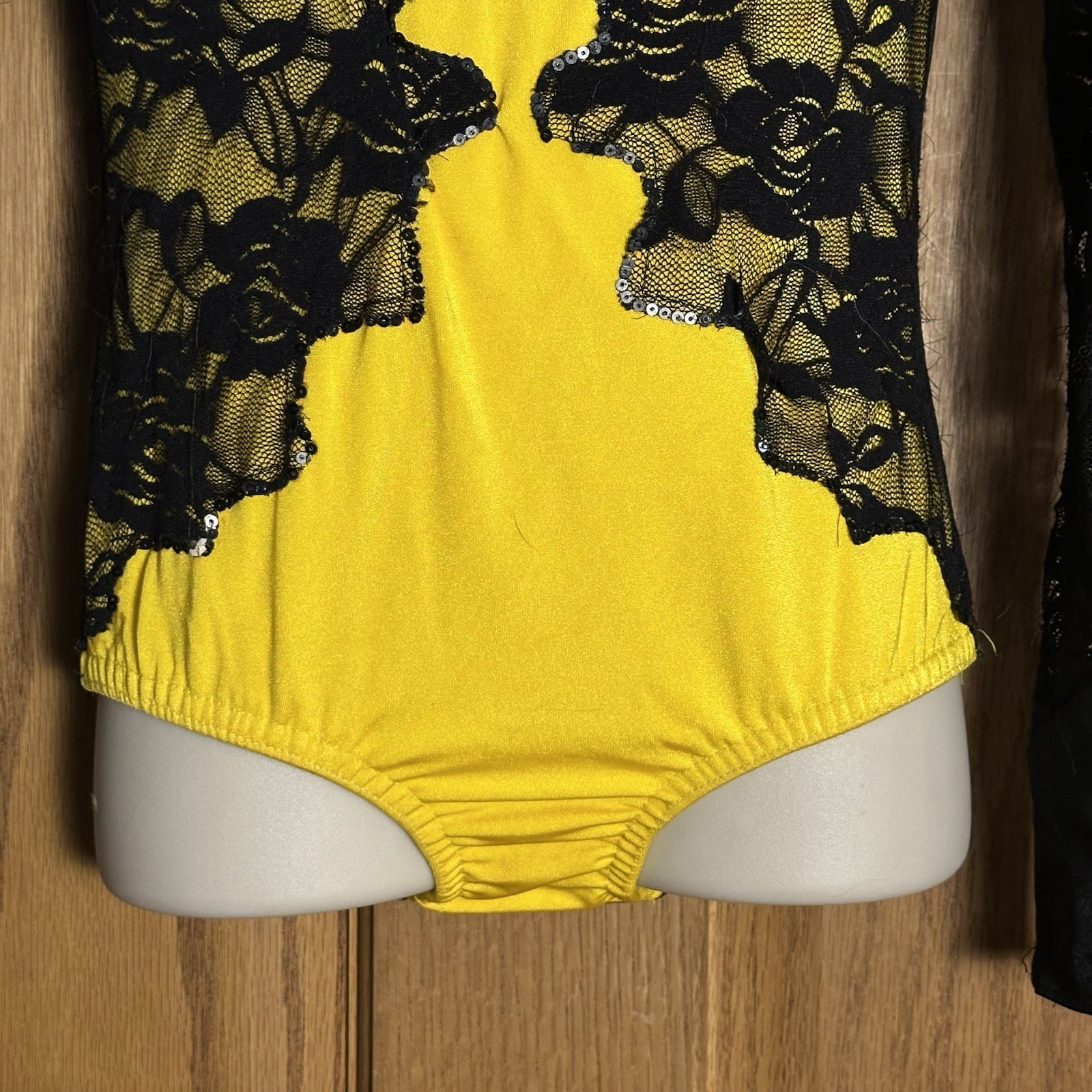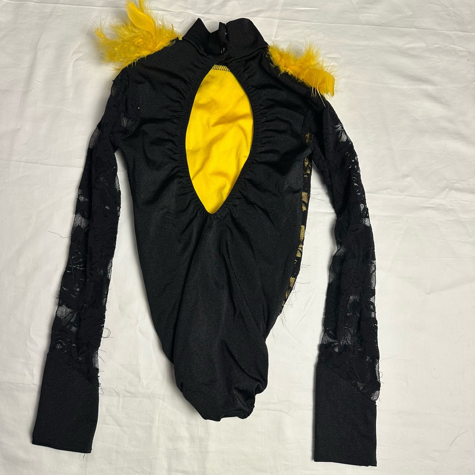 Kelle Company Yellow Black Lace Long Sleeve Feathers Leotard Dance Costume SC