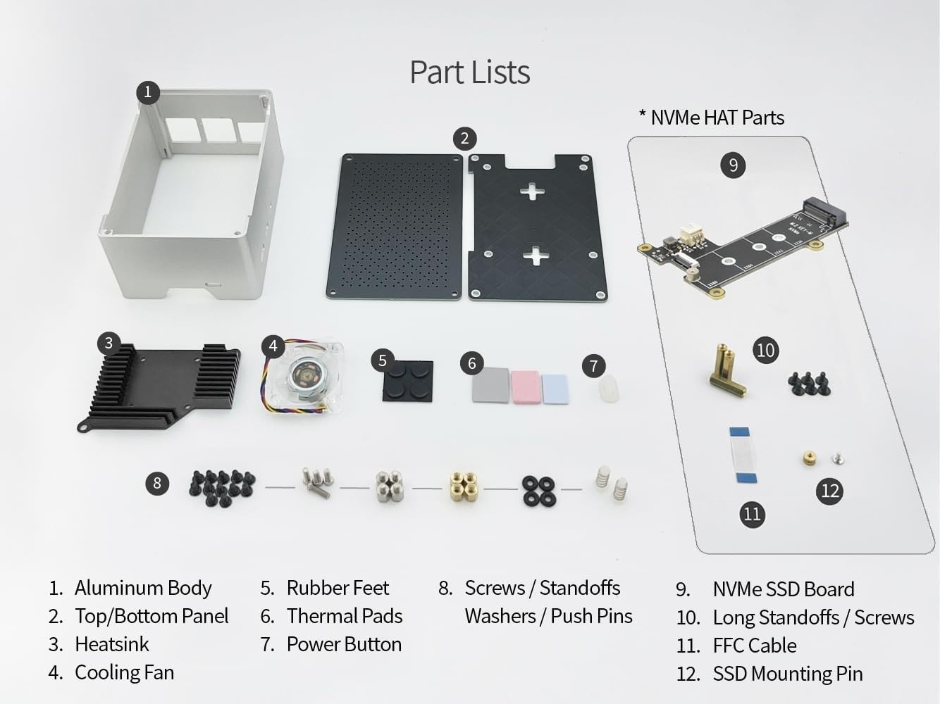 как выглядит Raspberry Pi 5 Case, Aluminum Compact Case W/ M.2 NVMe SSD PCIe HAT Active RGB фото