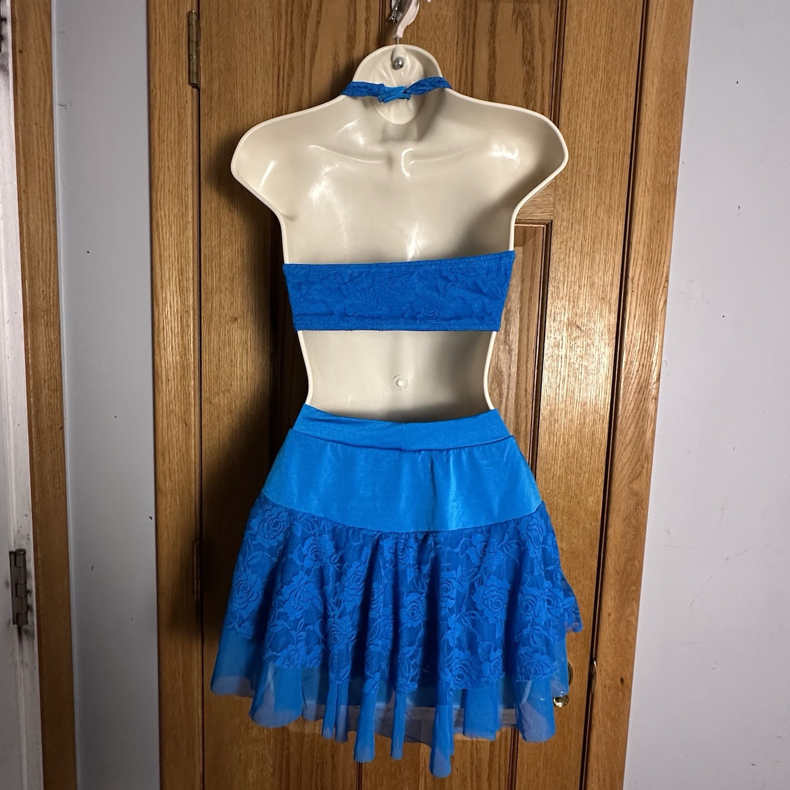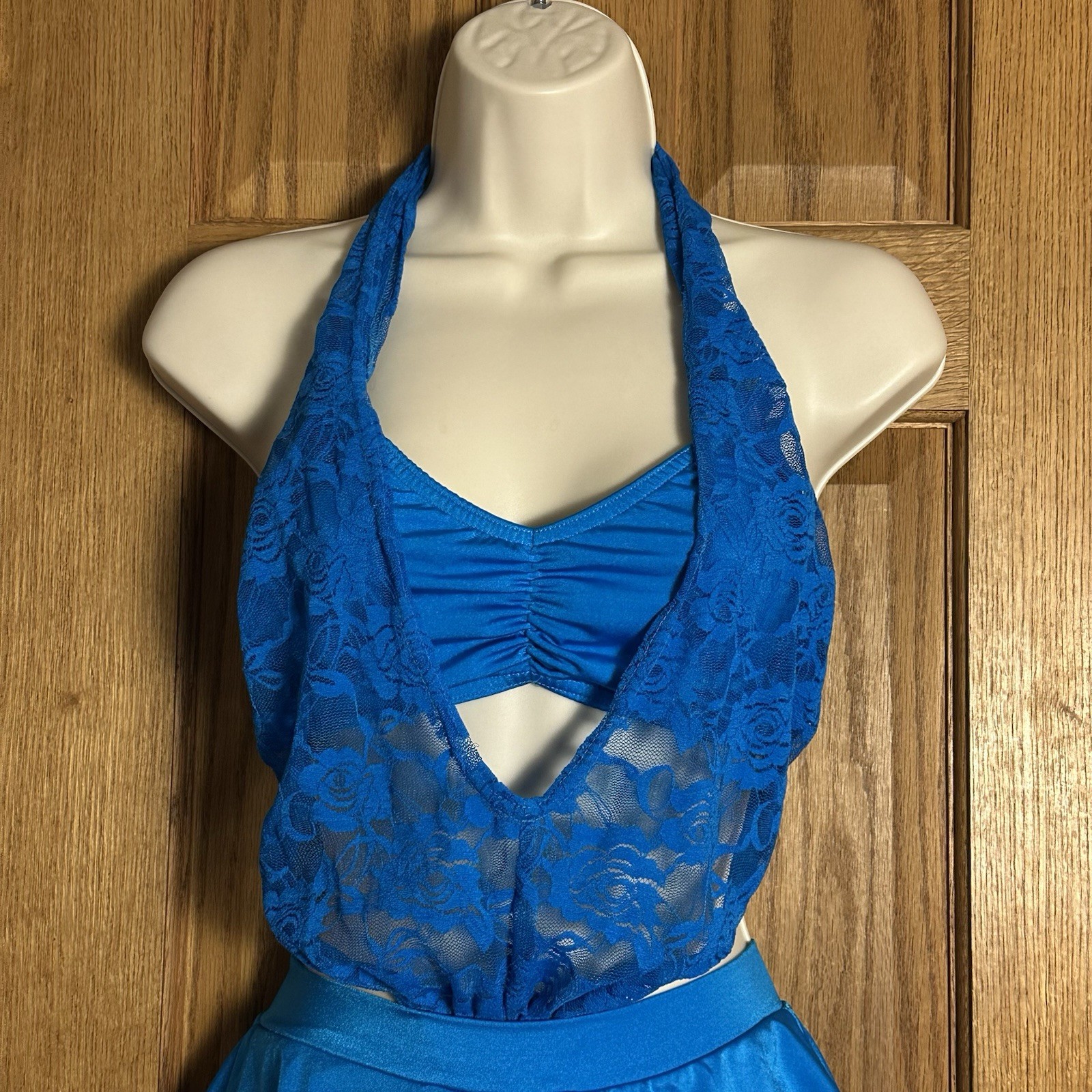 как выглядит Kelle Company NWOT Teal Lace Halter Dance Costume SA фото