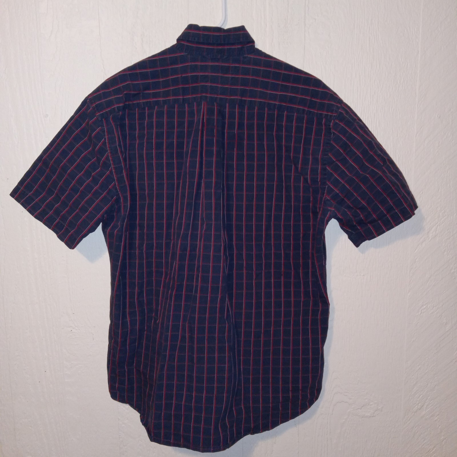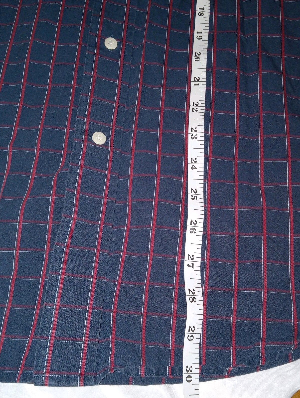 как выглядит Tommy Hilfiger Shirt Mens Large Navy Blue Check Button Down Short Sleeve Logo фото