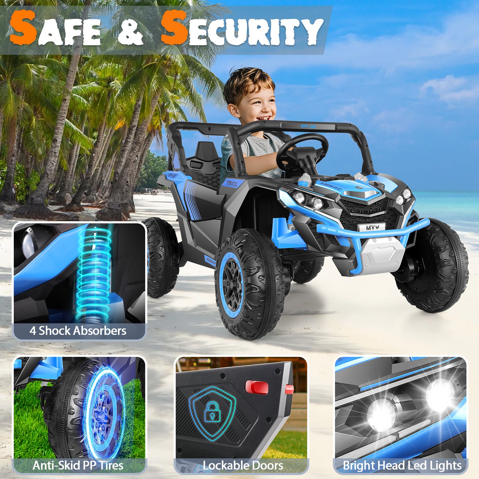 Safety Features: Spring Suspensions, Lockable Doors, Seat Belt