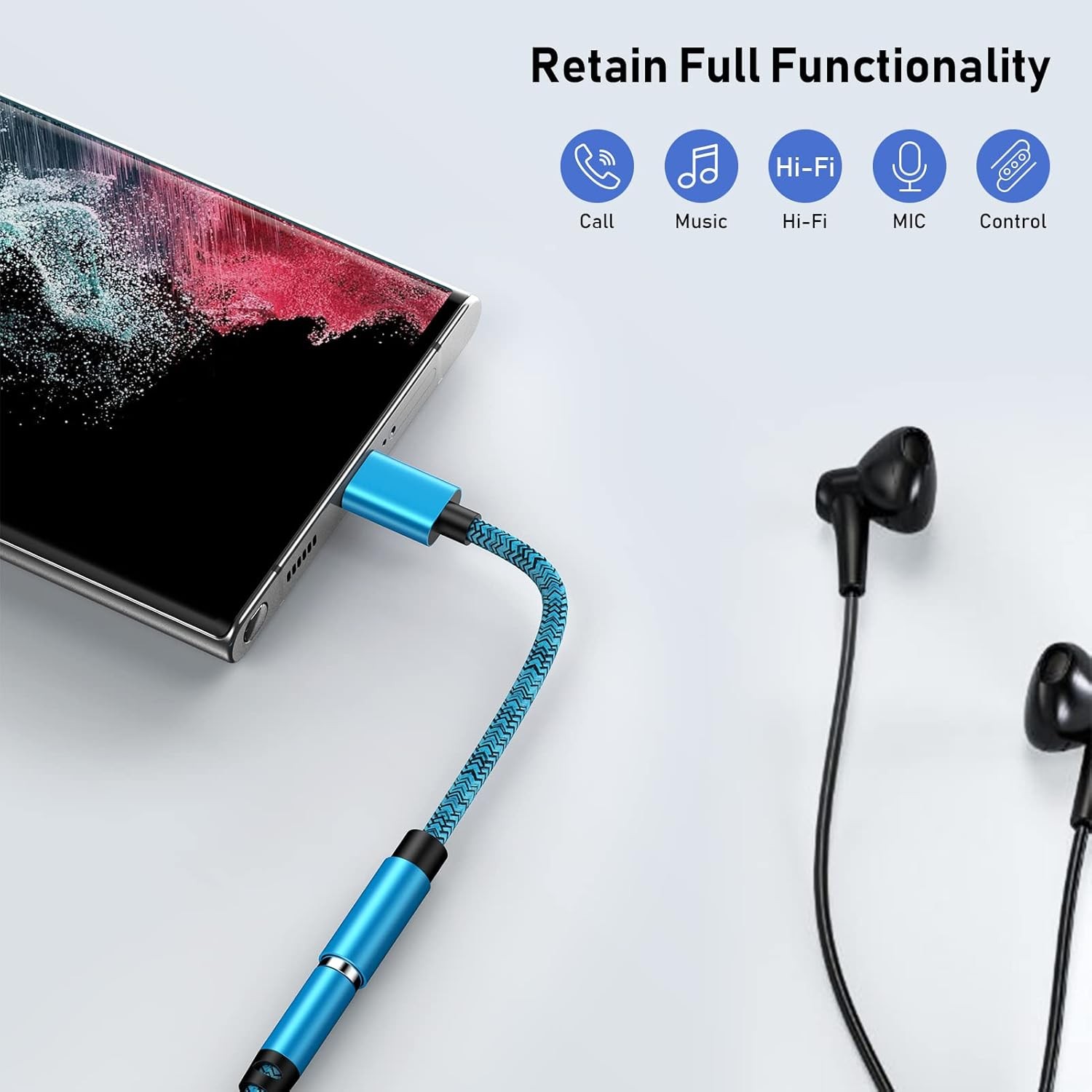 Samsung S25FE USB C to 3.5mm Aux Audio Adapter Dongle Cable Cord blue purple