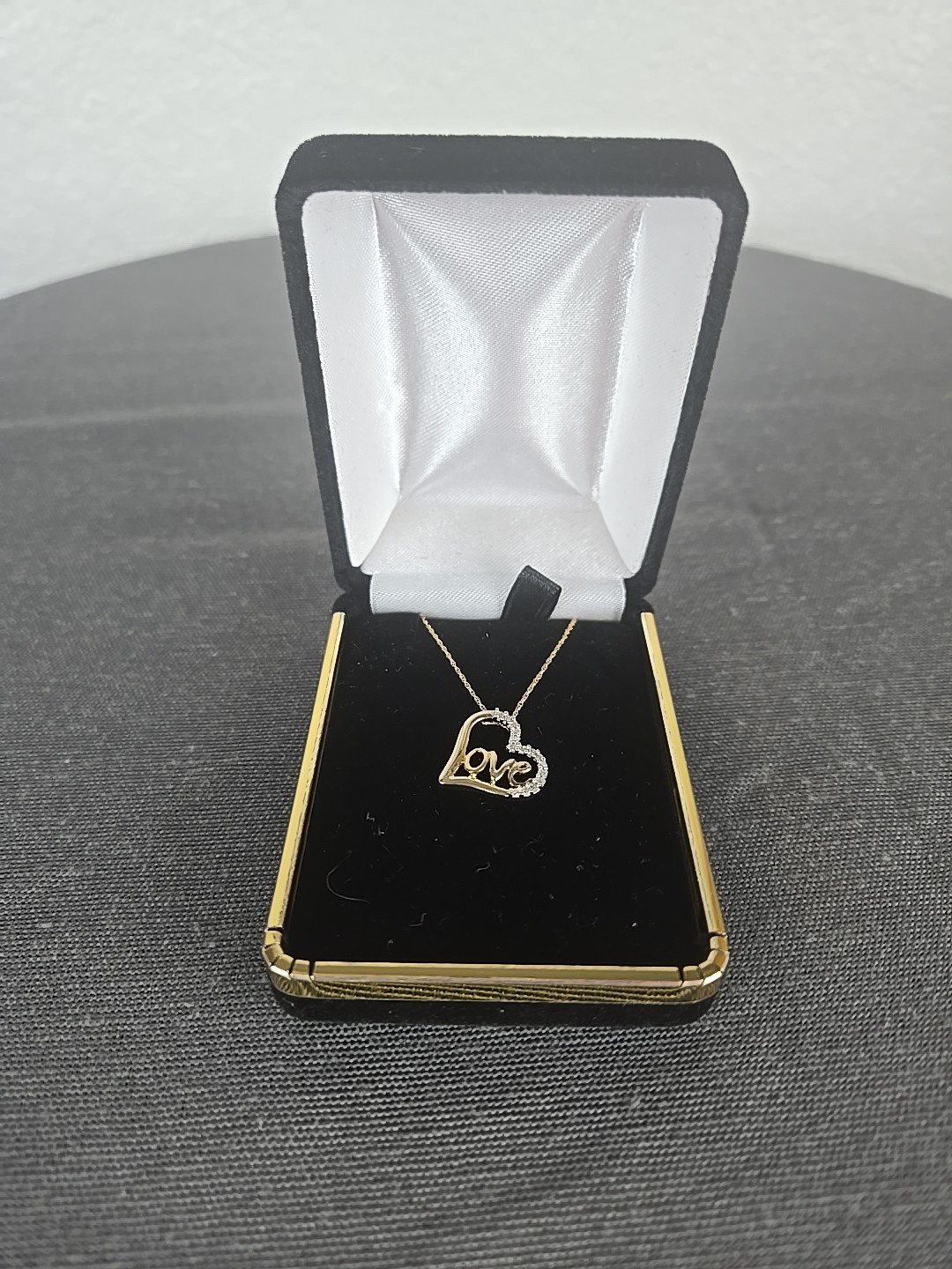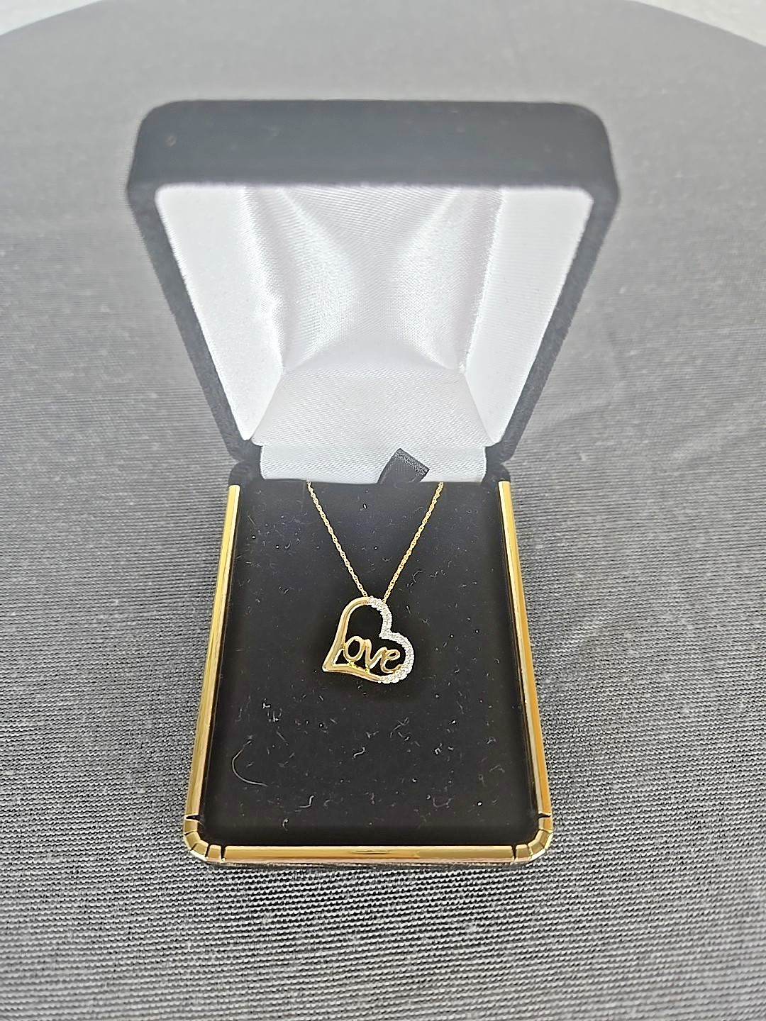 Appraised 760 - 10K Yellow Gold Diamond - Love Heart Pendant Necklace