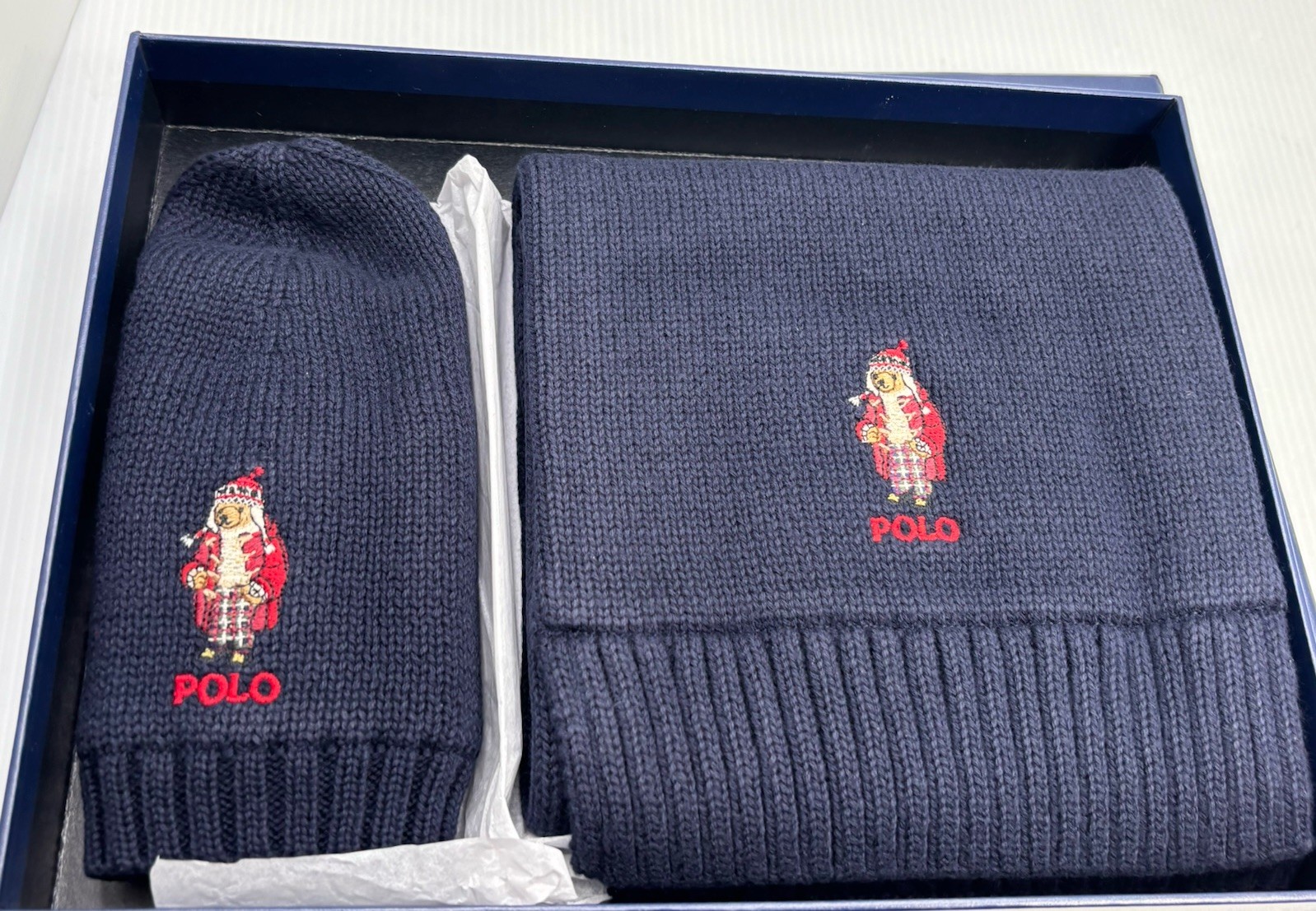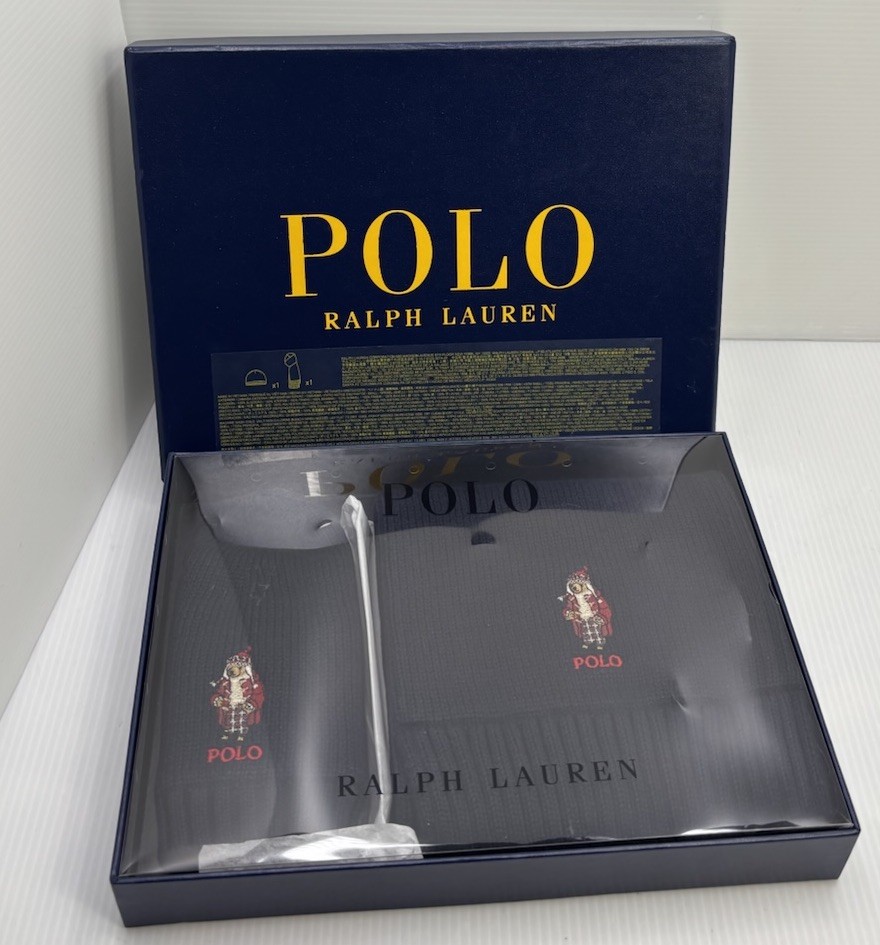 • New In Box Polo Ralph Lauren Bear Embroidered Beanie 9 Rim Scarf 52