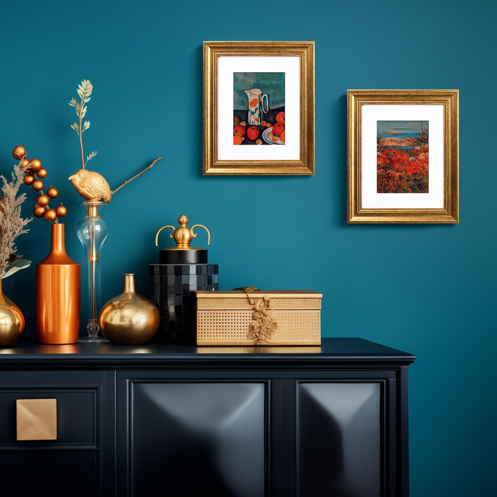 8x10 Picture Frame Matted to 5x7 Set of 4, 1.4 Wide Molding Rustic Gold Ph...