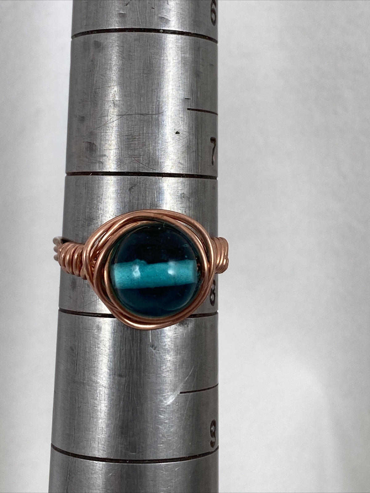 как выглядит Handmade Copper Wire Wrap Glass Bead Ring Size 7 1/2 97 фото