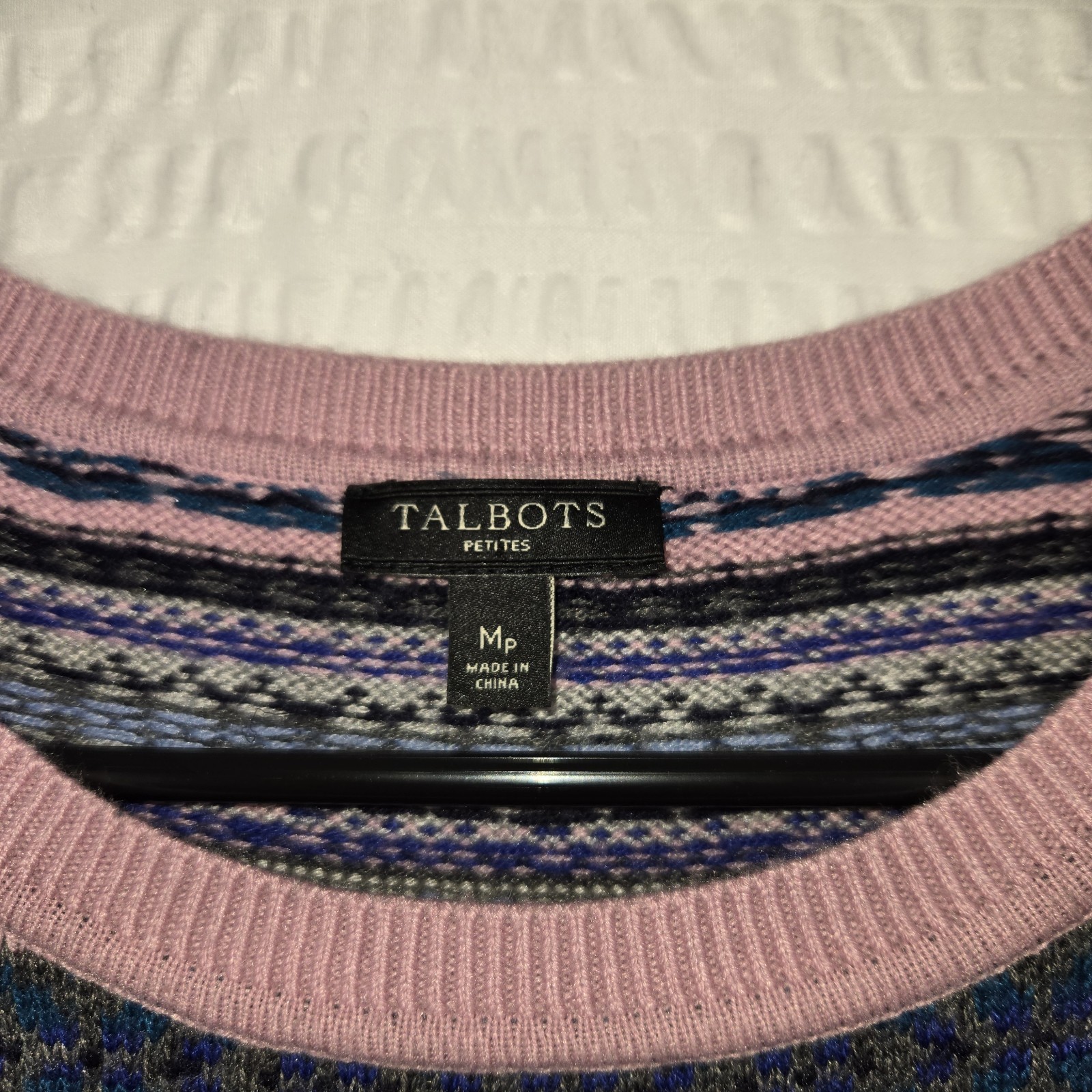 как выглядит Talbots Fair Isle Nordic Lambswool Gray Pink Pullover Sweater Size M Petite фото