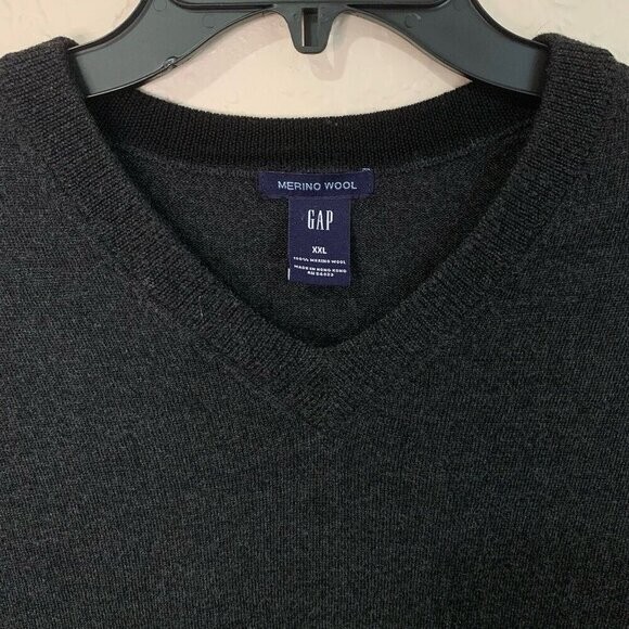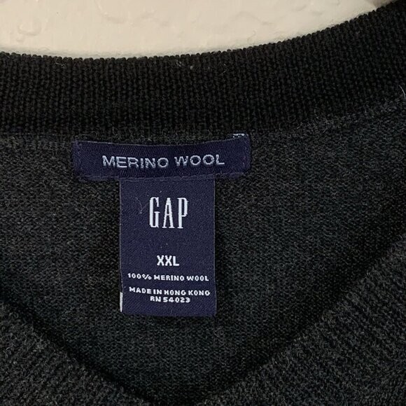 как выглядит Vintage Gap Merino Wool Sweater Mens XXL Gray Pullover Hong Kong V-neck Preppy фото