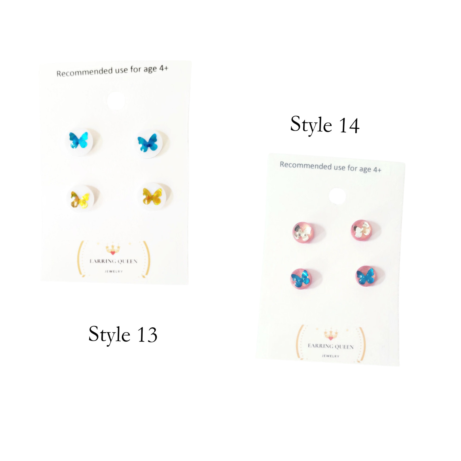 Butterfly Resin Stud Earrings Stainless Steel Set Girls Cute Pink Green Purple