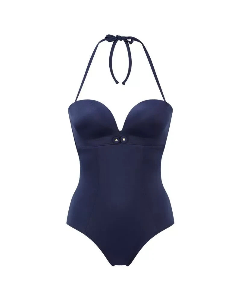как выглядит Gossard Retro Button Plunge Swimsuit Size UK 34A Halterneck One Piece Navy фото