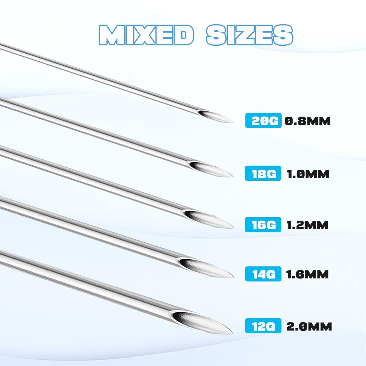 50pcs Piercing Needles Kit - 12G 14G 16G 18G 20G Mixed MIX-50PCS, Silver
