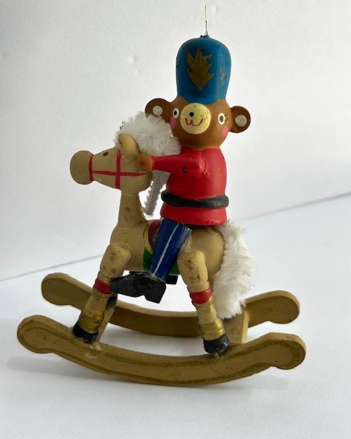 • Vintage Wooden Rocking Horse Christmas Ornament 1980