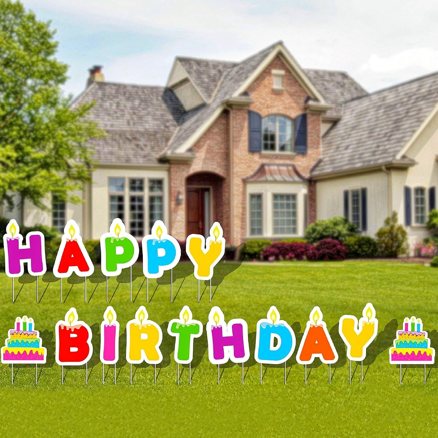 Happy Birthday Yard Signs with Metal Stakes, 17 Letters, Weather Resistant
