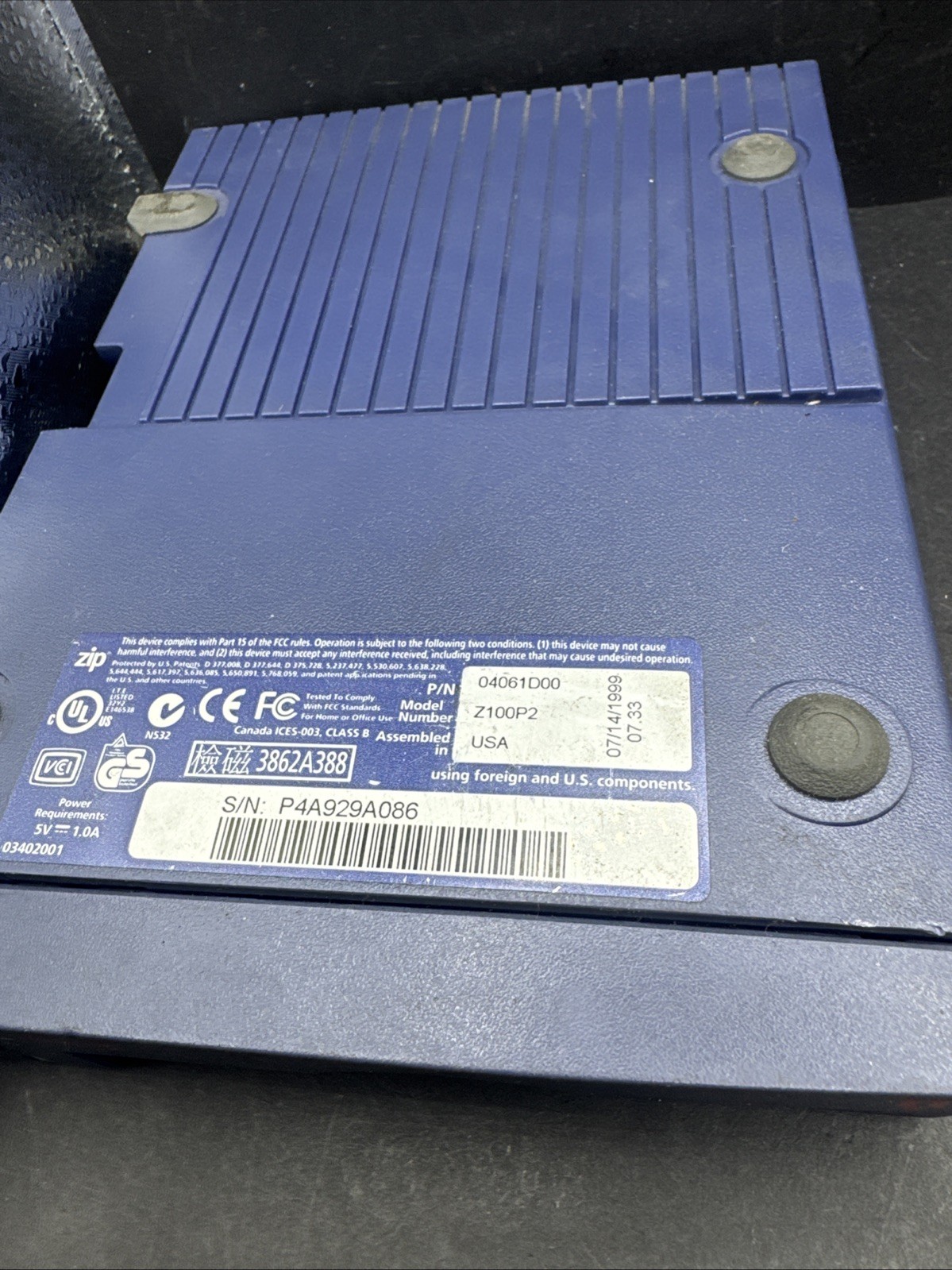 Iomega Zip 100 Portable External Parallel Zip Drive Z100P2 No Power Adapter
