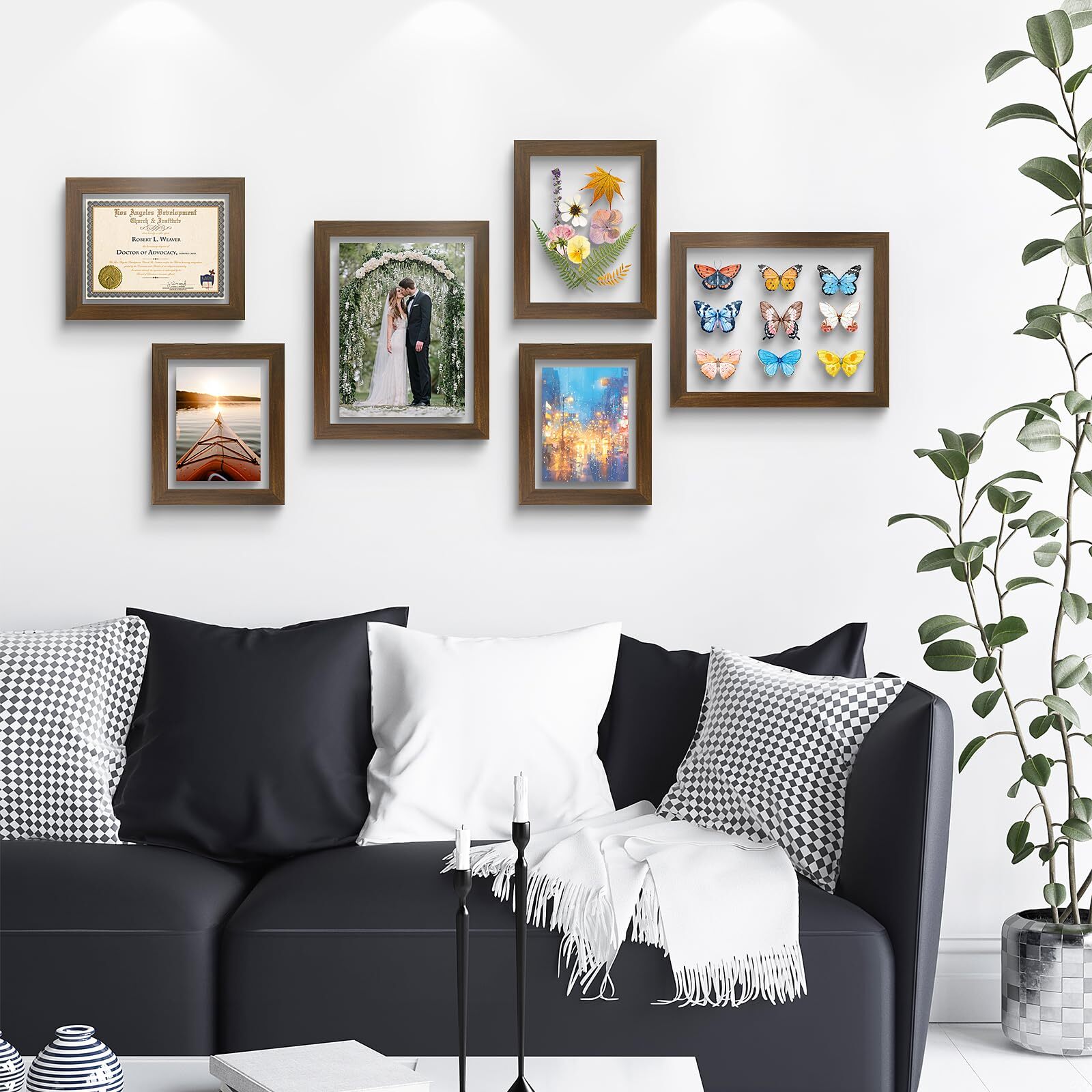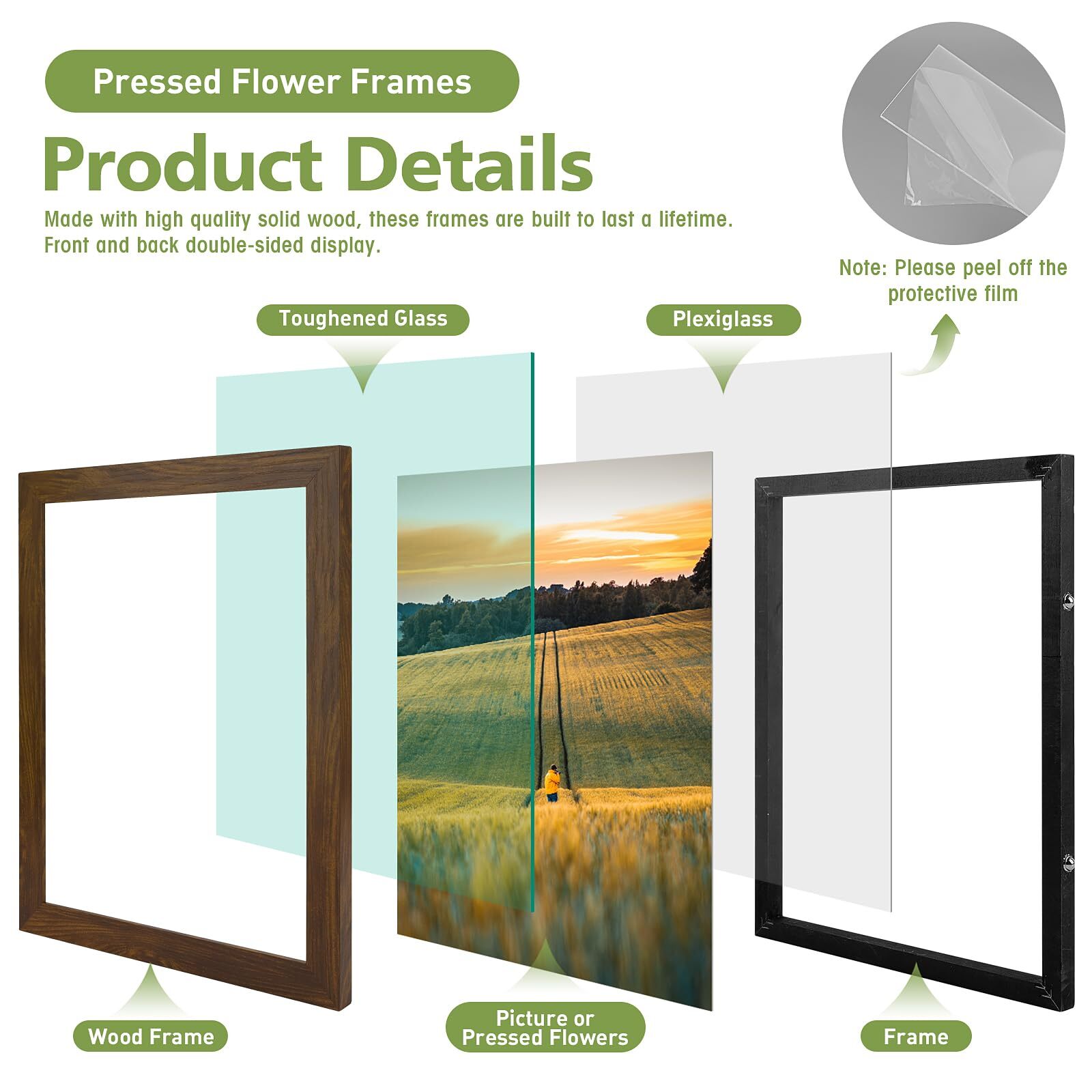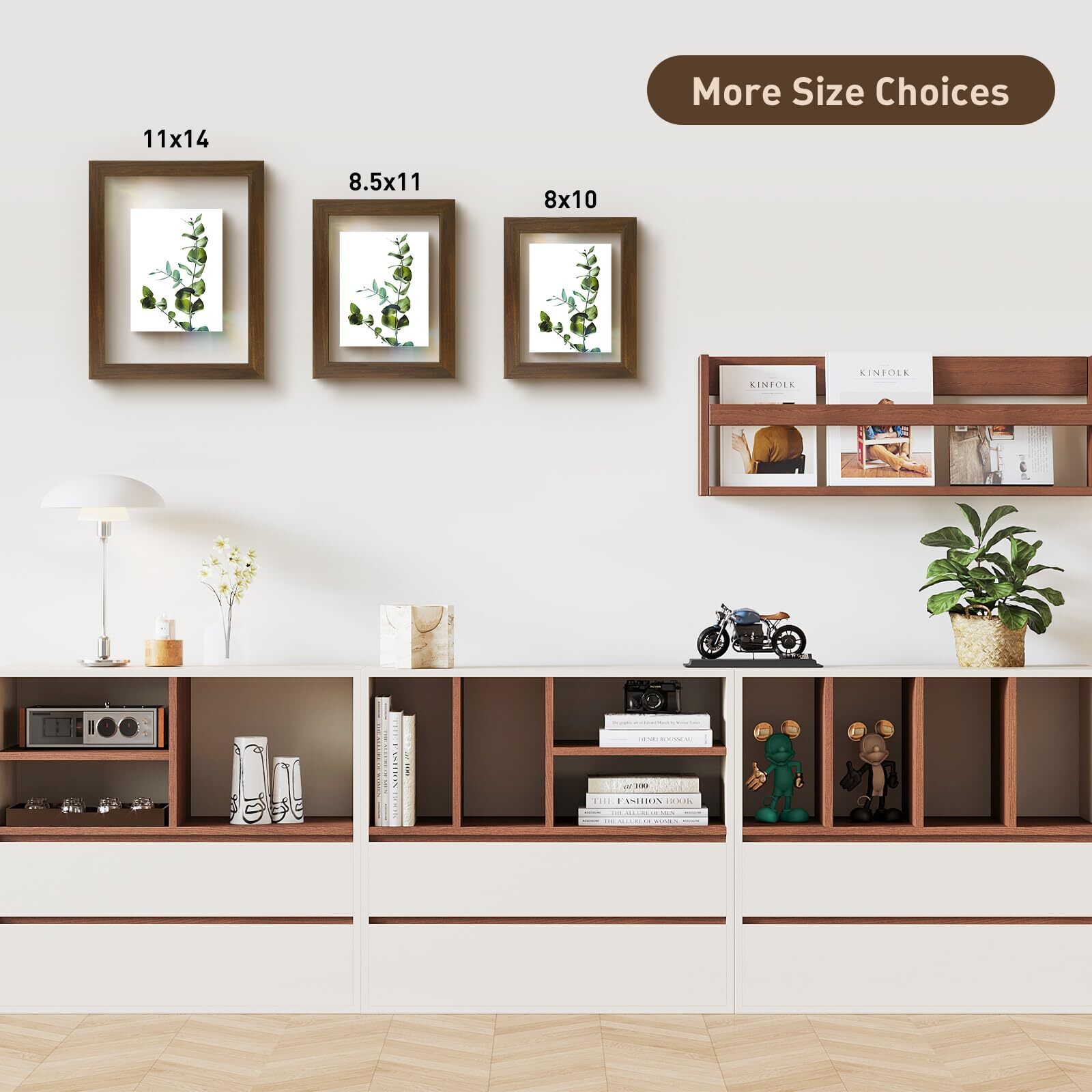 8.5x11 Floating Picture Frame Brown Wood Pressed Flower Any Photo 4 Pack