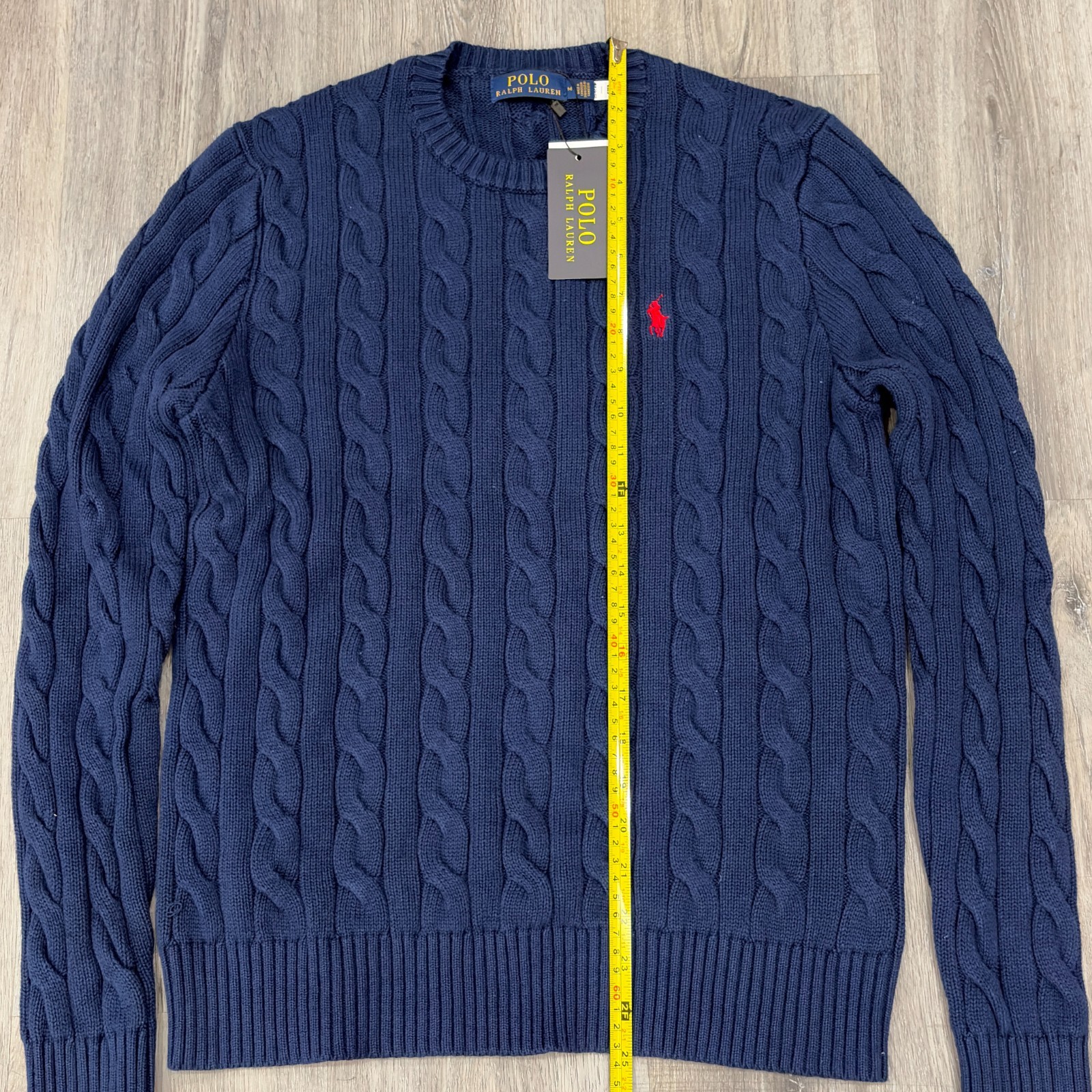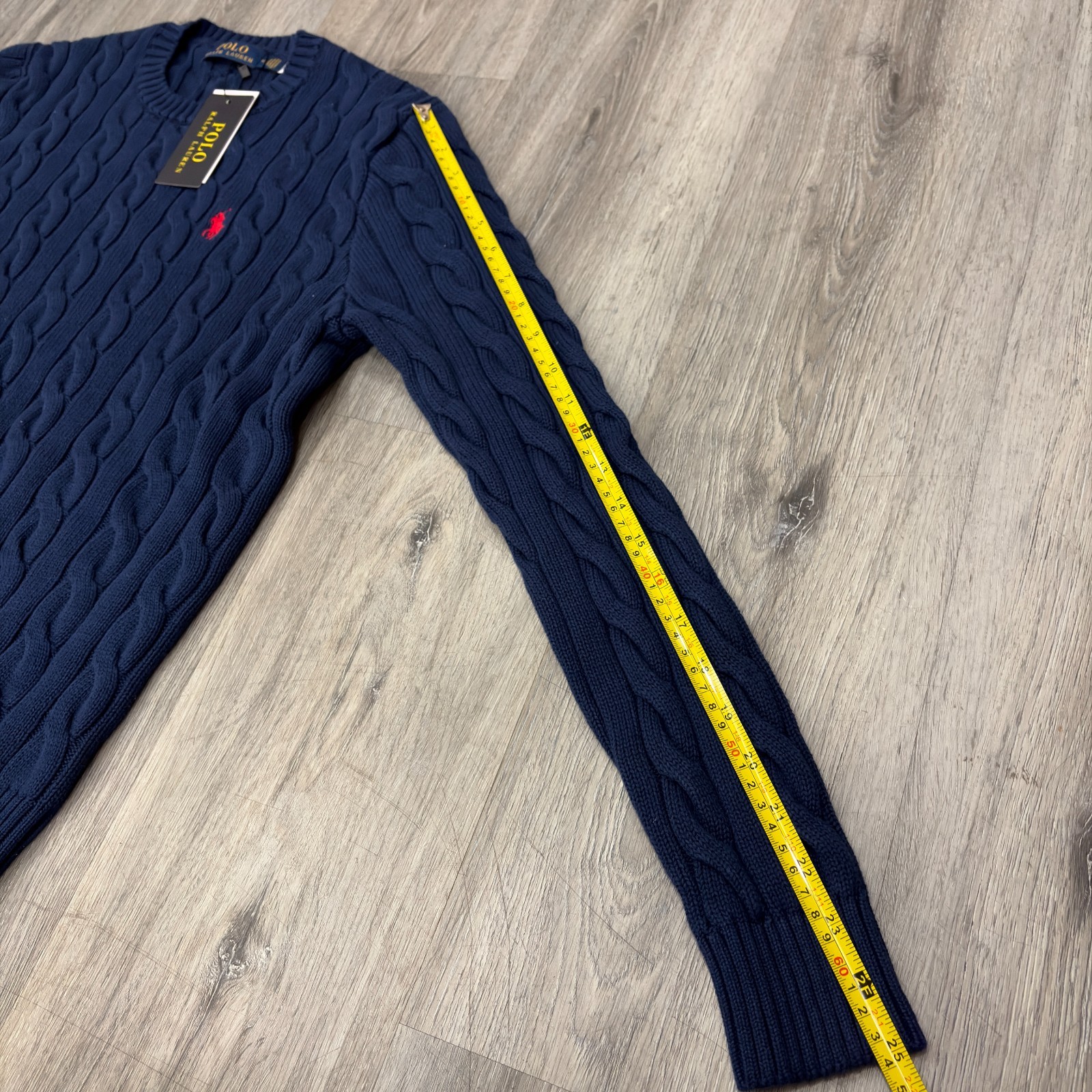 как выглядит Polo Ralph Lauren Cable Knit Crew Neck Pullover, Navy Blue, Unisex, Size M фото