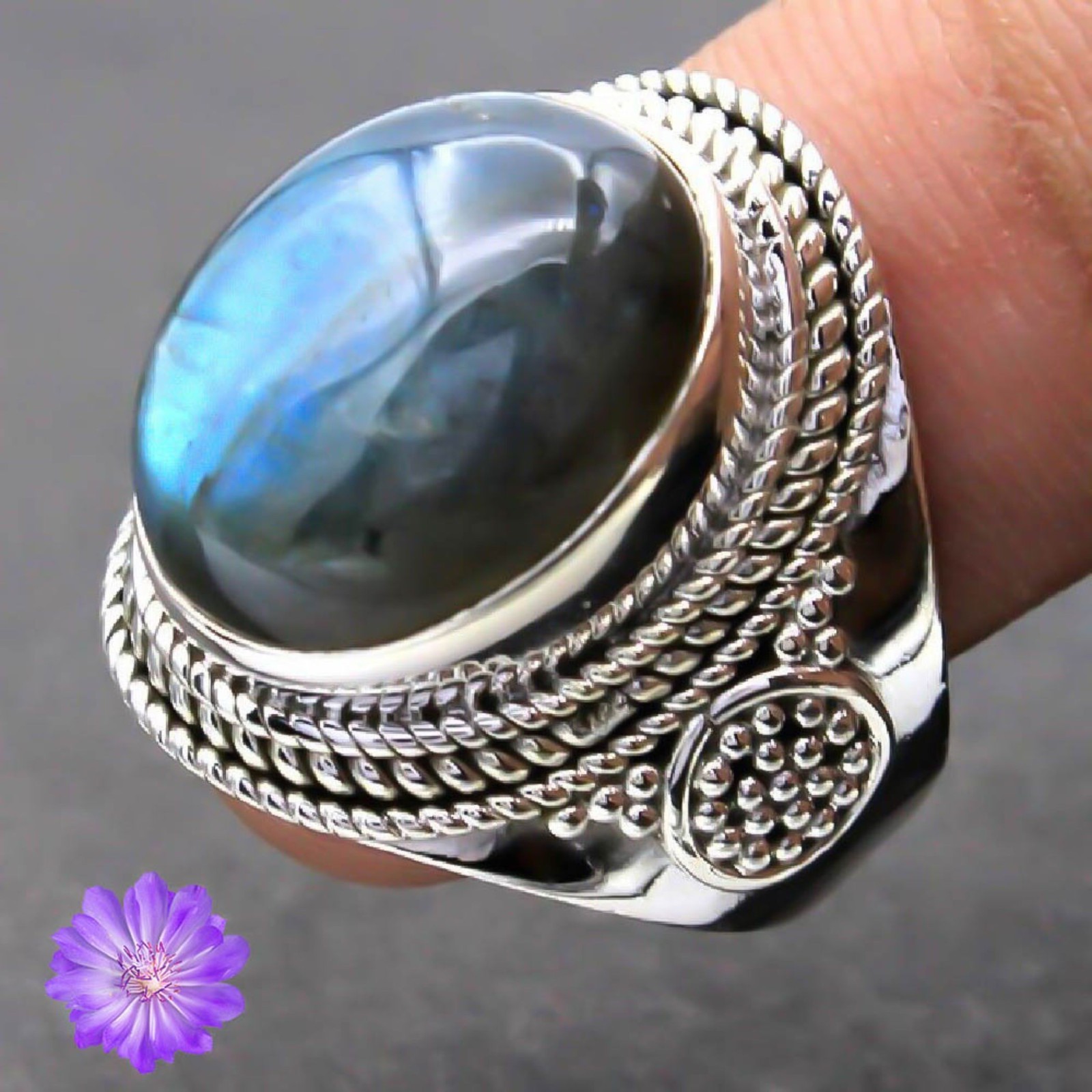 Natural Labradorite Gemstone 925 Sterling Silver Handmade Jewelry Ring Gift For
