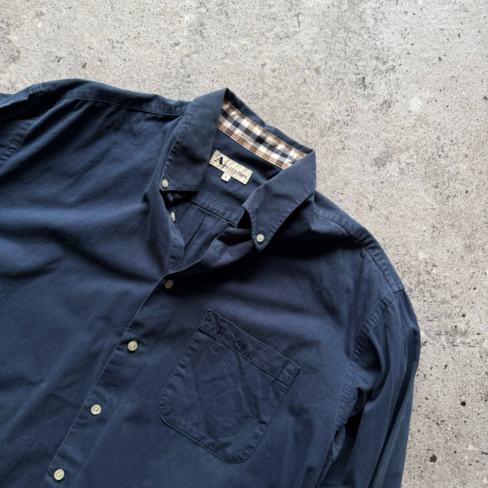Aquascutum of London Mens Navy Blue Brushed Cotton Button Down Shirt Size - L