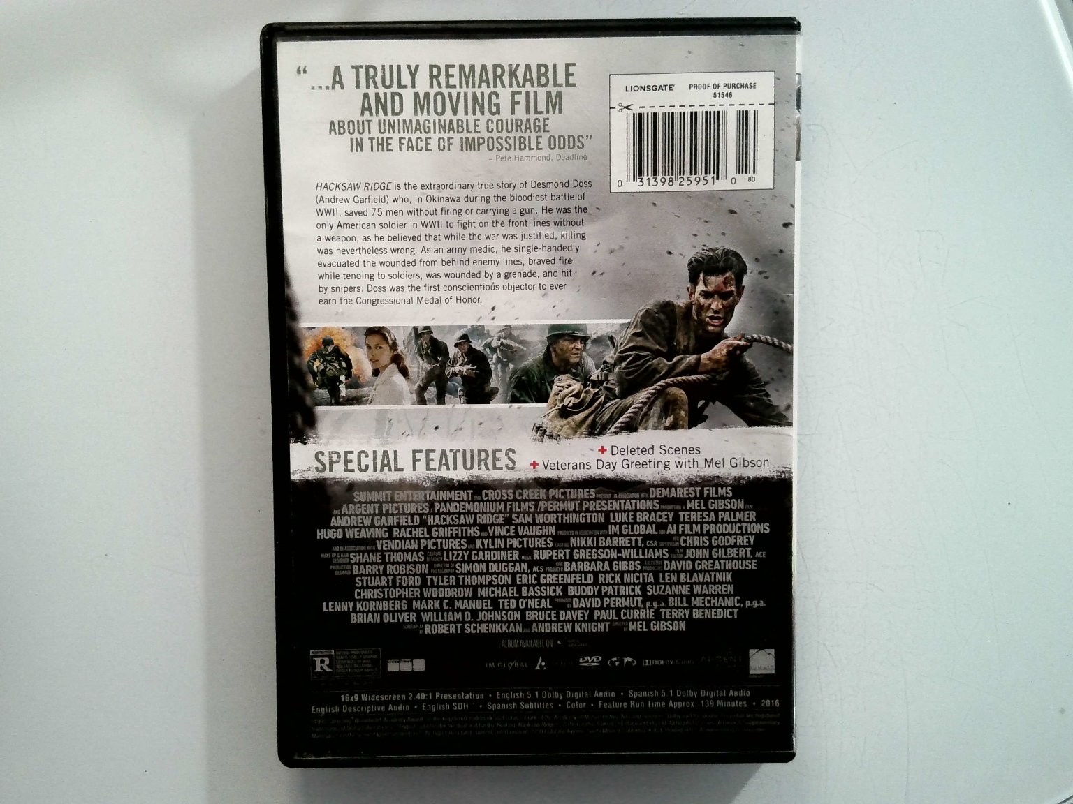 Hacksaw Ridge DVD 2016 Mel Gibson Andrew Garfield Deleted Scenes