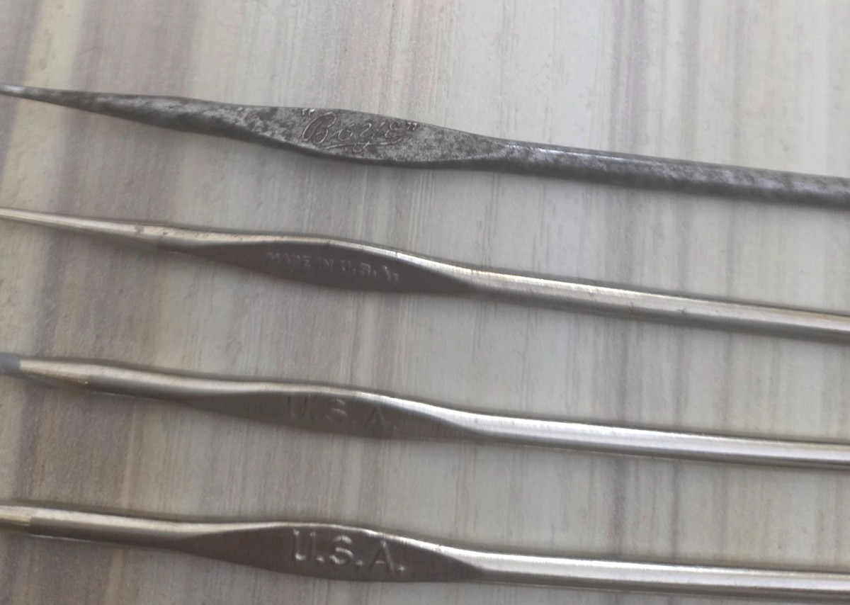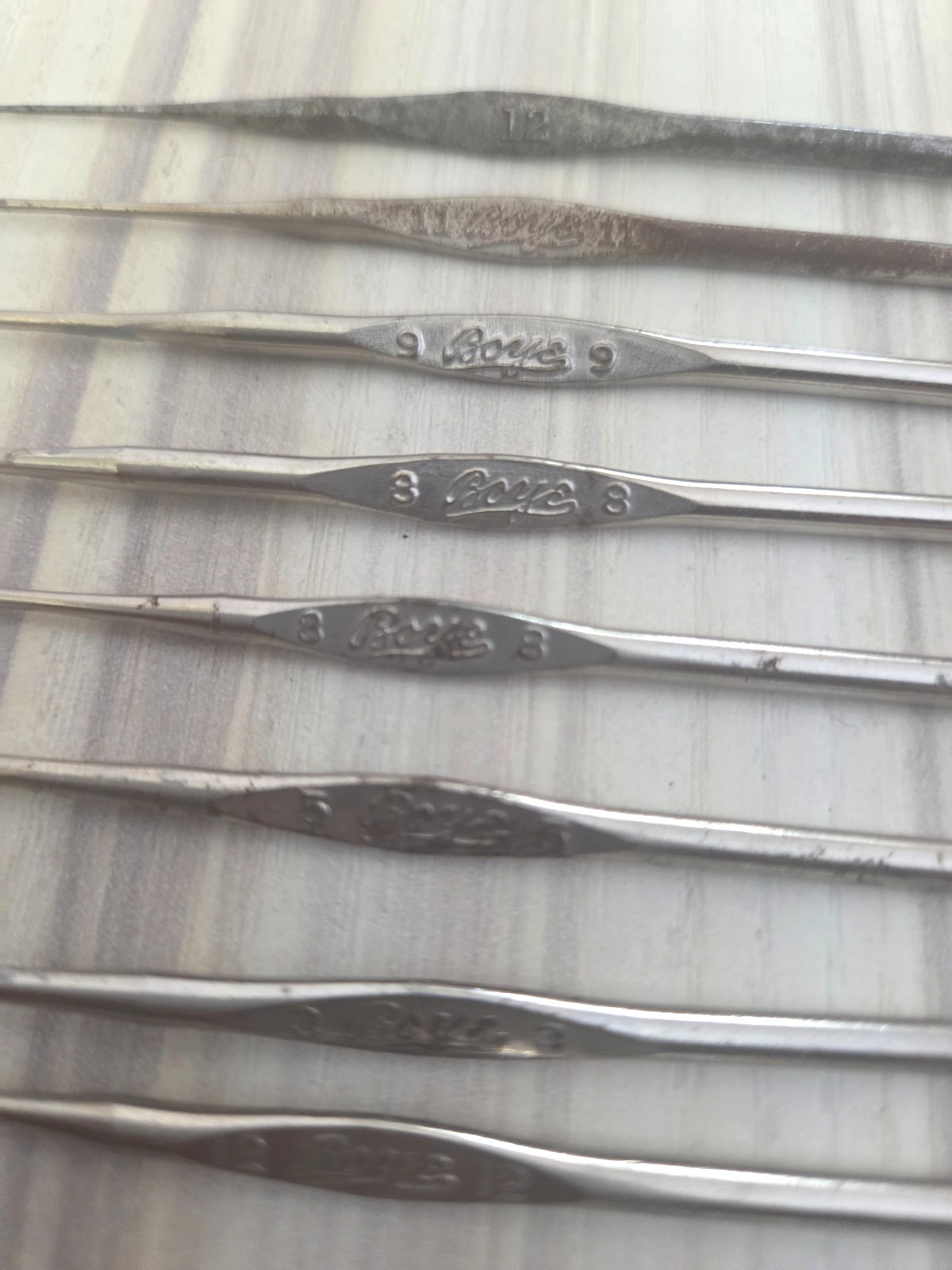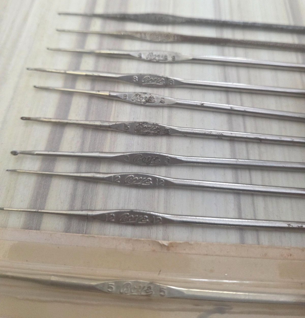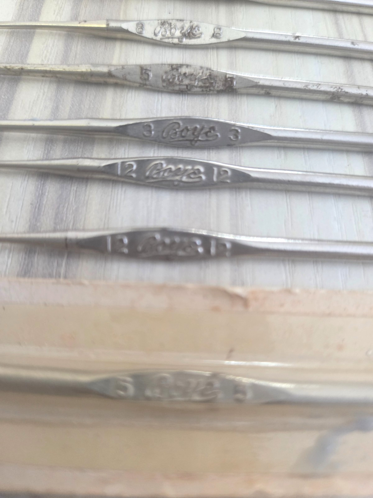 10 Boye Steel Crochet Hooks, One 1920's Antique, One Original Packaging, Vintage