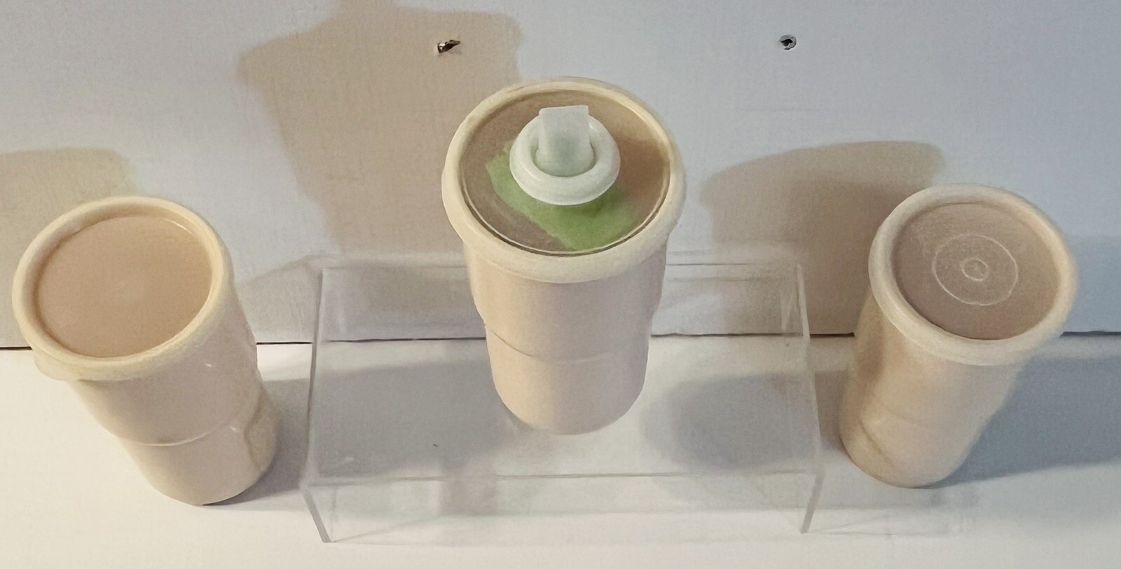 как выглядит Vintage Tupperware Set of 3 12 oz. Cups Tumblers Stackable G 2412B Lids Sippy фото
