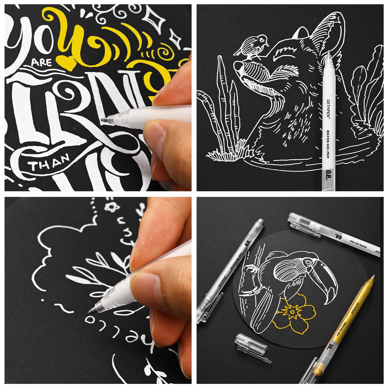 white gel pen 10-Pack 0.8mm Gel Pen Set White, Gold Silver Fine Point Opa...